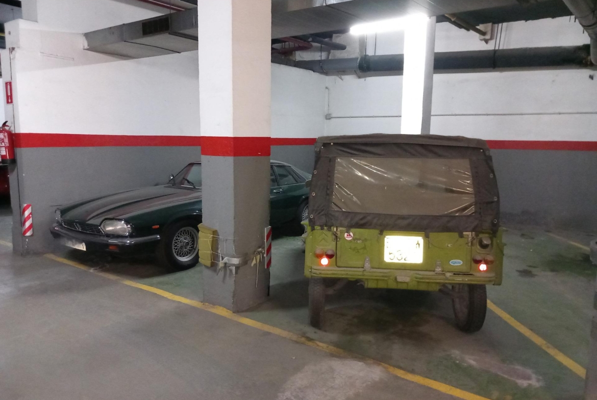 Plaza de aparcamiento doble, de gran tamaño.~Para 2 coches medianos.~~Calle Violant d’Hongria. Entre Tenor Masini y Joan Güell.~Junto al Parque de Can Mantega.~~Entrada amplia, de fácil maniobra.~Plaza asimétrica. Con forma de triángulo. ~~Medida: 18m (Largo 6m x Ancho 6m).~Medidas aproximadas. ~~Planta -1. con mando a distancia.~~Aicat: 7666 ~~