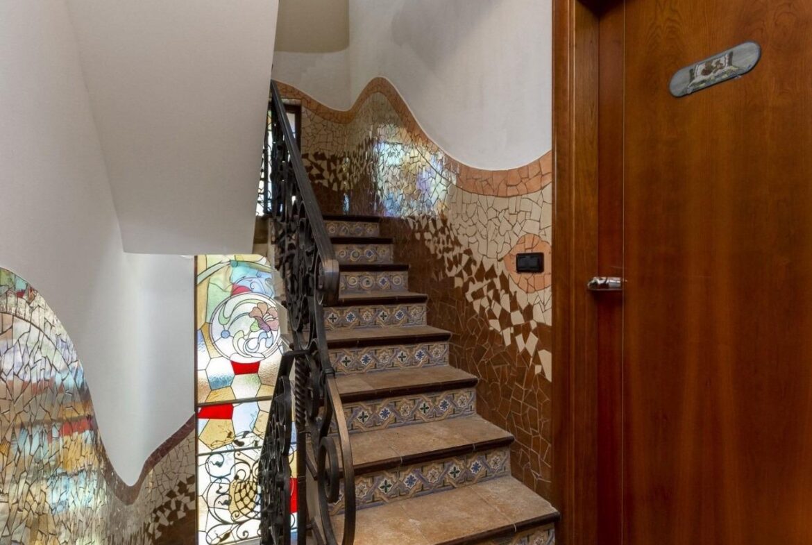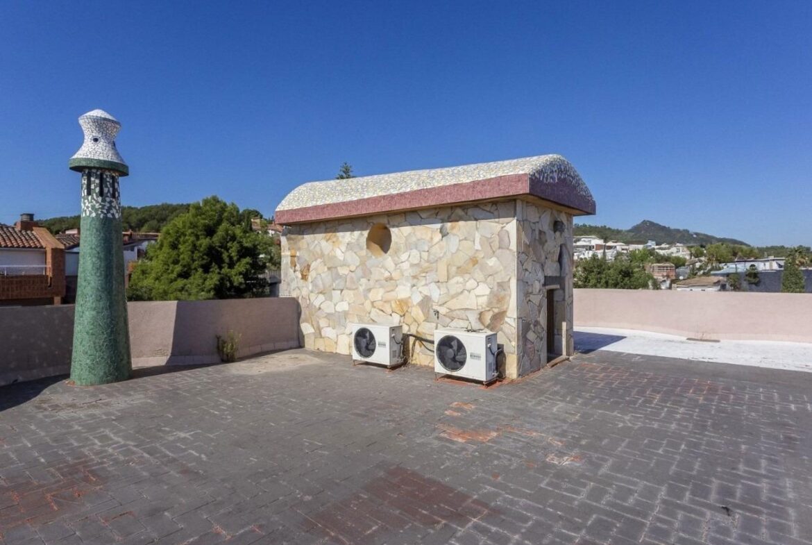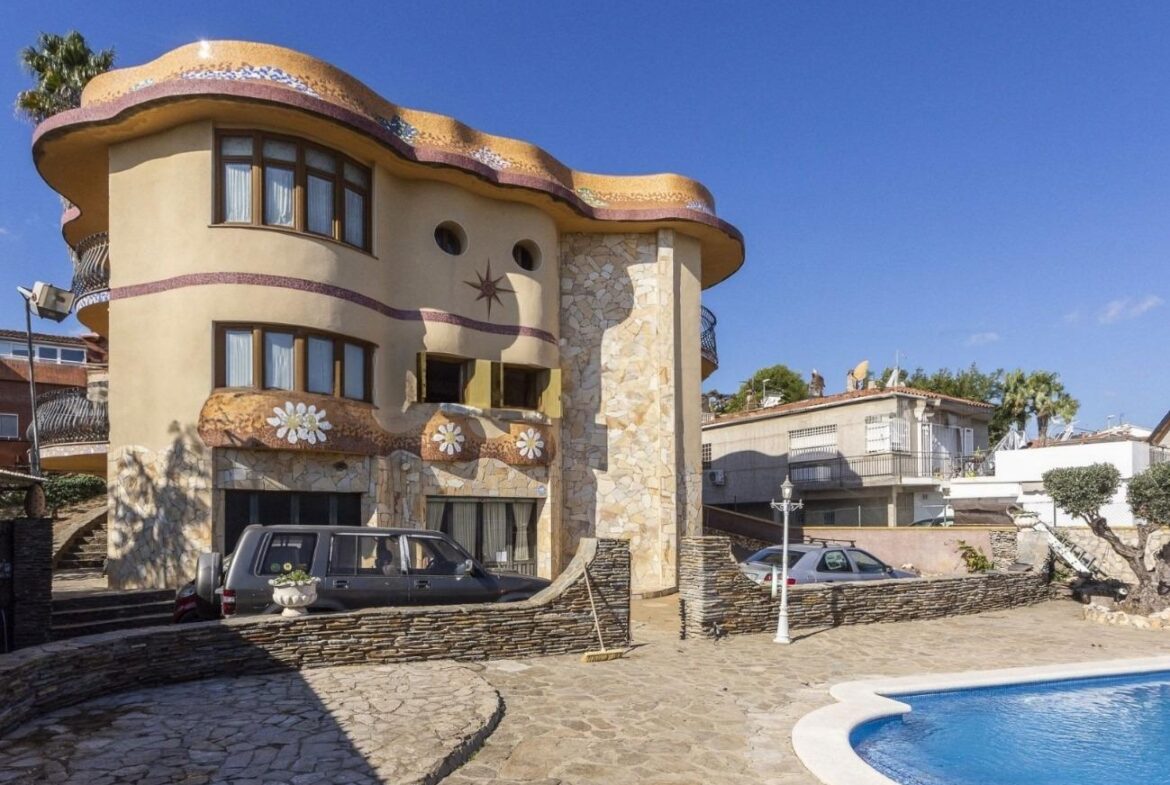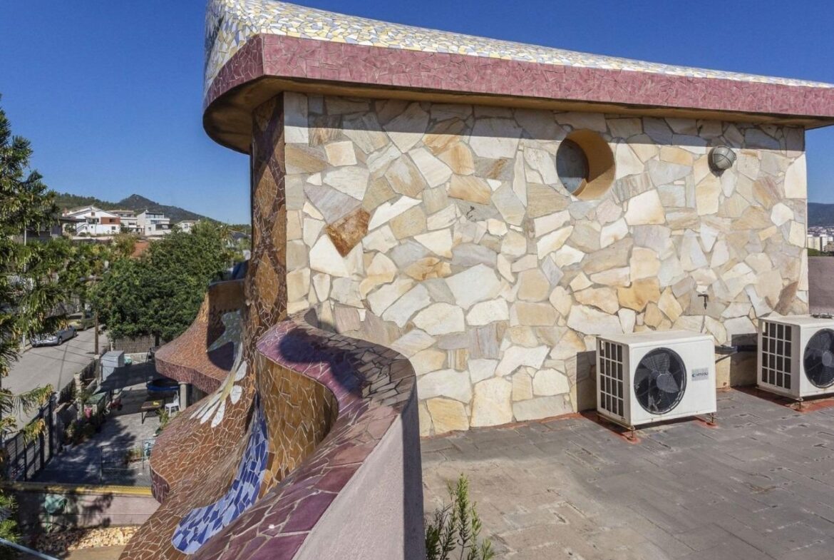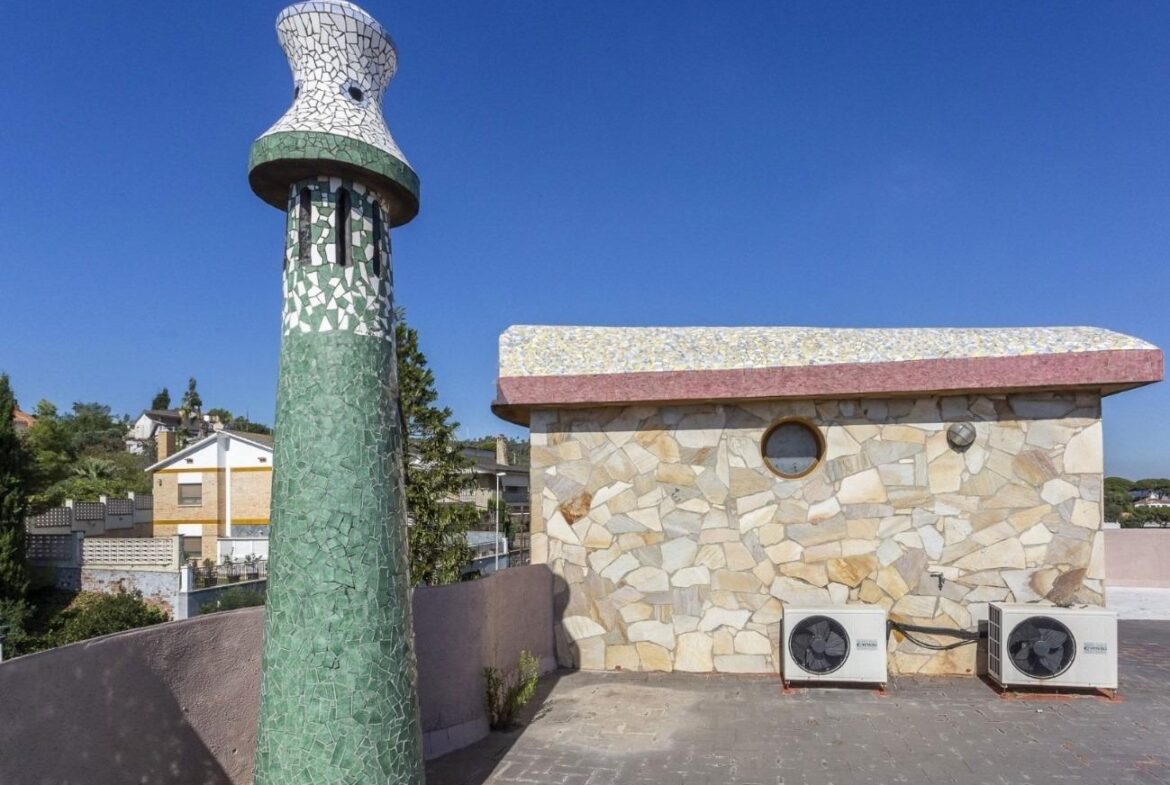 Descubra una propiedad excepcional de 300m², enclavada en una generosa parcela de 820m², que rinde homenaje al icónico estilo de Antoni Gaudí.~~Desde el momento en que se accede a esta exclusiva residencia, la imponente fachada de inspiración gaudiniana y su entorno, abrazado por un extenso jardín de más de 600m², cautivan la mirada. El umbral se abre a un espacioso recibidor que revela de inmediato los distintivos toques gaudinianos, patentes en las innovadoras ventanas que inundan de luz natural los espacios.~~La planta principal alberga un encantador salón-comedor de aproximadamente 50m², contiguo a una moderna cocina y una elegante zona de lavandería. Complementan este nivel una espaciosa habitación doble, un aseo y otro generoso salón-comedor de más de 50m². El ascenso por la escalera conduce al salón principal, donde una hermosa fuente se erige como elemento destacado. En este nivel, se distribuyen cuatro dormitorios dobles, uno de ellos con un vestidor que, por sus amplias dimensiones, podría considerarse una estancia adicional. Cada dormitorio se beneficia de su propio balcón. El lujo se completa con un baño equipado con jacuzzi, otro con ducha y unas impresionantes vistas al mar.~~La planta superior revela una espectacular terraza de más de 130m², que ofrece vistas panorámicas de 360º, una experiencia única para contemplar la inmensidad del Mar Mediterráneo. Descendiendo a la planta inferior, encontramos una segunda cocina, un aseo, un baño, una habitación triple y otro espacioso salón-comedor, de dimensiones similares al de la planta principal. Al extenderse desde el comedor hacia el jardín, se descubre una espectacular piscina de más de 32m², una zona de barbacoa, un espacio para un relajante chill-out y un aparcamiento con capacidad para más de tres vehículos. Desde la piscina, se puede admirar la singular fachada de esta extraordinaria residencia.~~Esta torre, situada en una apreciada y tranquila zona de Sant Boi de Llobregat, a unos 20 km de Barcelona, goza de excelentes comunicaciones (tren y autobús), Aeropuerto de Barcelona a tan sólo 18 minutos en vehículo.~~