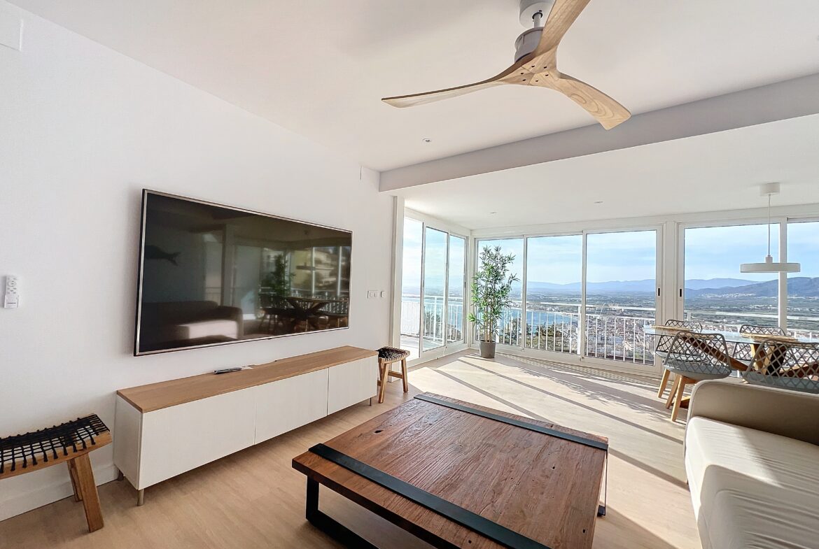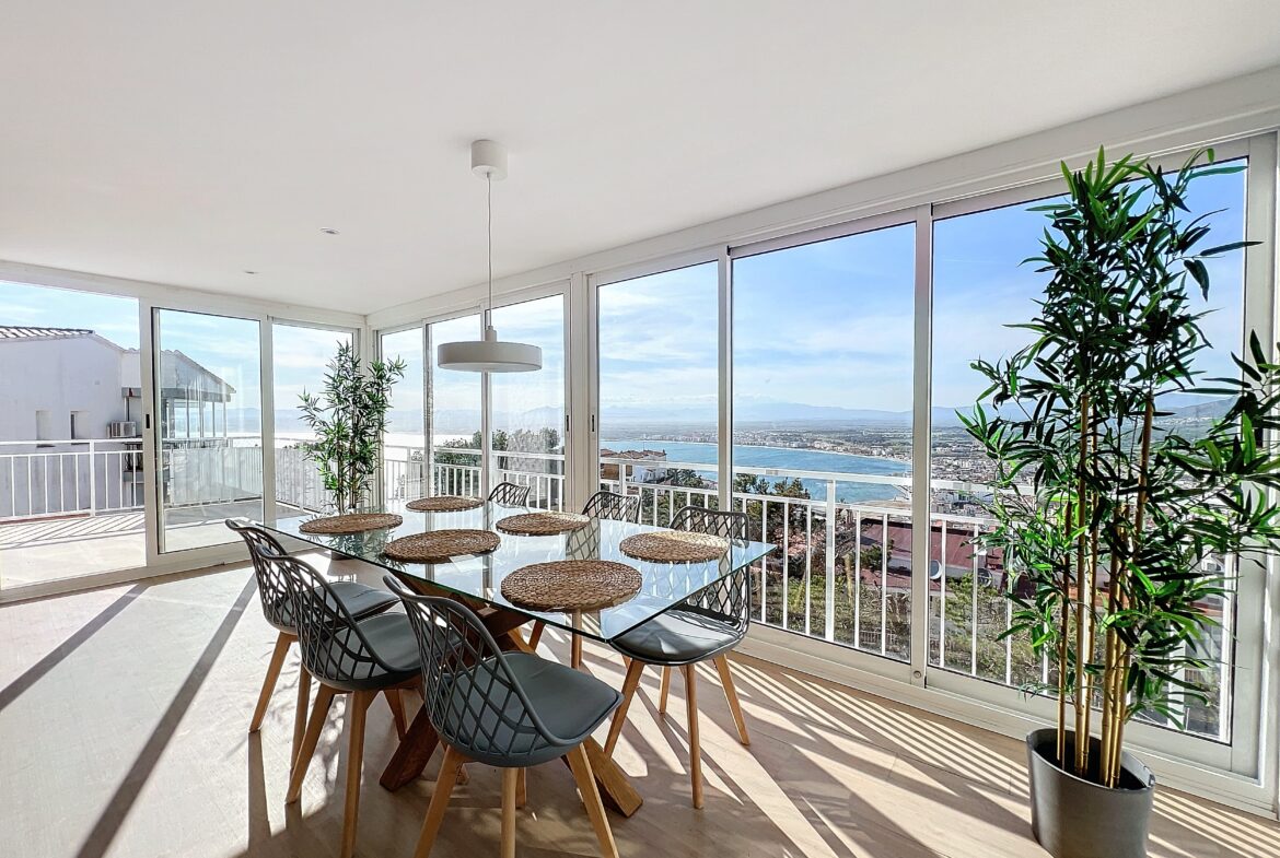 Magnífica villa de 145 m² con piscina privada y impresionantes vistas a la Bahía de Roses y los Pirineos. La sala principal es muy luminosa y ofrece un amplio espacio, tiene con 3 dormitorios y 2 baños,(una tipo suite y dos habitaciones dobles), una cocina americana totalmente equipada, una grande terraza. Esta edificada sobre una parcela de 750 m², por los cual tiene también muchos espacios al aire libre.El cuarto de la lavandería y el trastero permiten mucho almacenamiento. En resumen, esta villa ofrece un entorno de vida idílico con sus espectaculares vistas.~