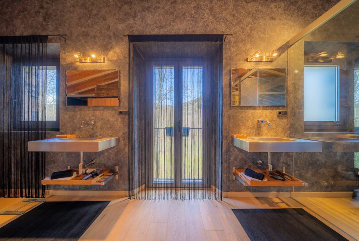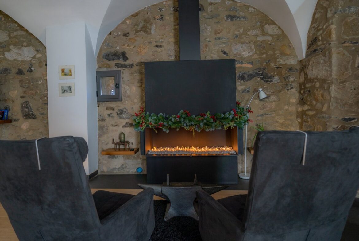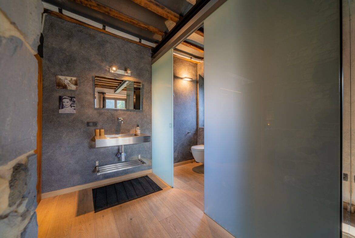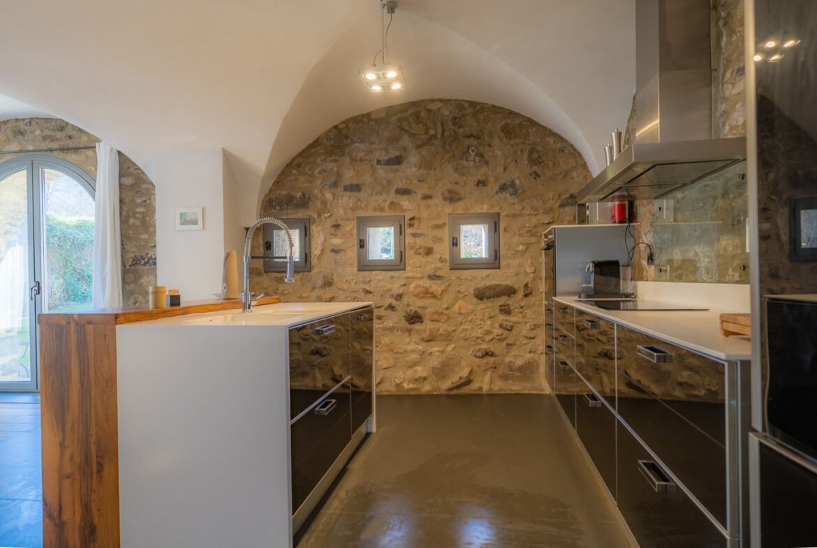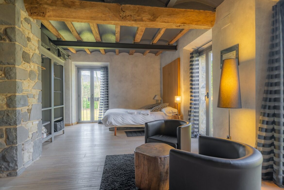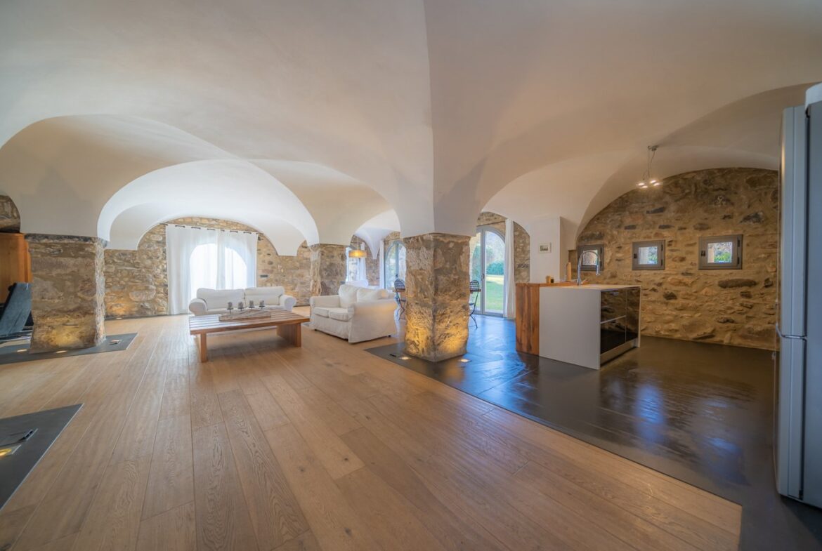 En exclusiva, una masía de arquitectura tradicional catalana totalmente restaurada con muy buen gusto, en la comarca de La Garrotxa, exactamente en Sant Joan Les Fonts y a diez minutos de la ciudad de Olot, con un terreno de casi tres hectáreas.~~La masía dispone de aproximadamente 140 m² cada planta y se distribuye de la siguiente manera:~~En la Planta baja una sala diáfana con varias puertas acristaladas de entrada y salida al exterior de la casa y al jardín, compuesta de salón-comedor con cocina americana, chimenea y baño de cortesía. ~~~En la primera planta encontramos dos suites con sus respectivos baños completos con ducha: Una de aproximadamente 75 m² y la otra de 40 m². La más grande con acceso directo al jardín y piscina.~~En la segunda y última planta, la gran suite de unos 140 m² con baño completo acristalad.~~La propiedad dispone de una piscina interior con agua caliente y otra exterior.~~Es una masía de piedra de un diseño exquisito, moderna y acogedora, en un entorno que no deja indiferente. Una mezcla de paz, comodidad y con los servicios necesarios muy cerca de la ubicación de la propiedad.~Situada en un lugar privilegiado, un territorio con gran valor y gran belleza natural. Muy cerca del parque Natural de la Zona Volcánica de la Garrotxa.~~Dispone de suelo radiante, splits en todas las salas y habitaciones; wifi; piscina interior de agua caliente con placas solares y otra piscina exterior.~~El agua para la piscina y para el riego de todo el terreno proviene de la Font Del Serrat.~~~~~~~~~