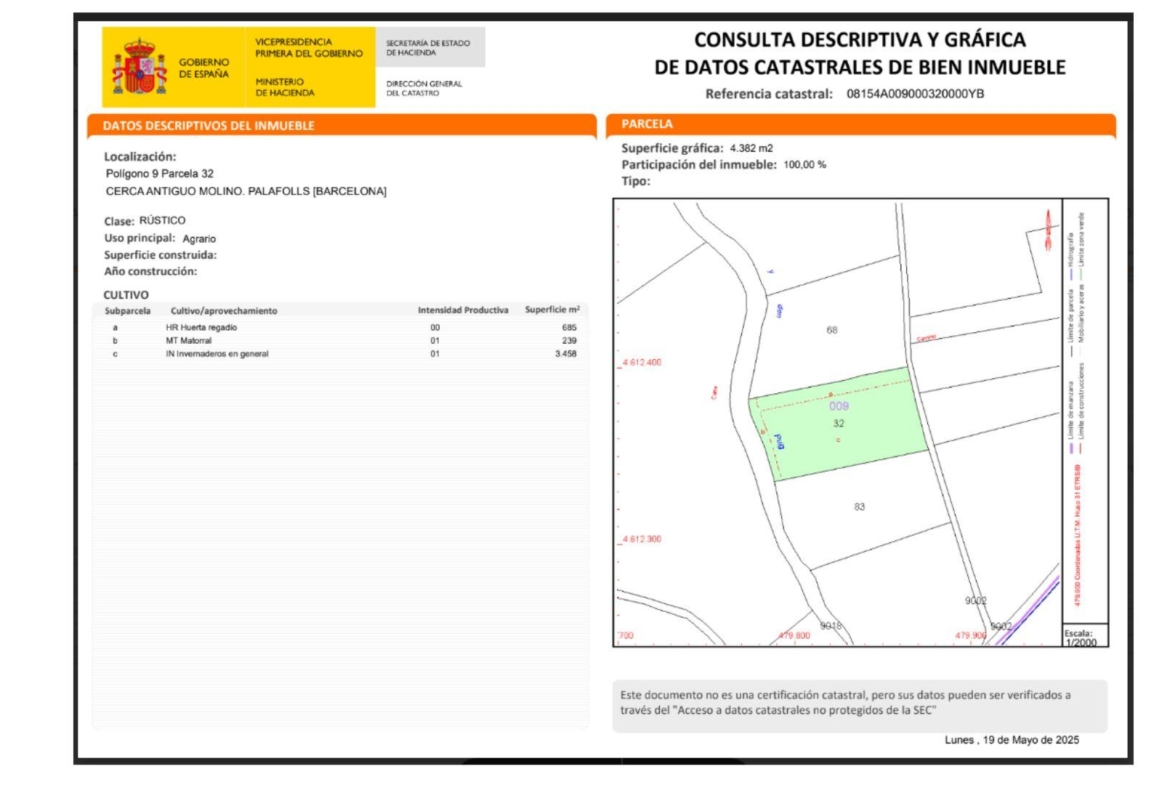 Hinvernadero en Venta en Palafolls – ¡Oportunidad Única! . Facilidad de pago a 5 años. ~Descubre esta espectacular nave de 24.810 m² ubicada en un entorno tranquilo y natural, ideal para proyectos agrícolas o horticultura profesional. La finca cuenta con una habitación y dos baños, con terreno totalmente cerrado y plano, perfecto para cultivos e iniciativas agrícolas.~Incluye un invernadero para cultivo protegido, así como todos los servicios esenciales: electricidad, pozo e iluminación. Su excelente accesibilidad y la proximidad a las principales vías de comunicación del Maresme hacen de esta ubicación una opción estratégica para tu negocio.~Con certificado energético exento y en buen estado de conservación, esta nave es una oportunidad que no puedes dejar escapar. Si buscas un espacio para desarrollar tu empresa agrícola, un herbolario o cualquier proyecto hortícola, este es el lugar ideal.~¡No esperes más y ven a visitarla!~~En compliment de les obligacions d’informació previstes en la Llei 10/2025, de 28 de desembre, de serveis d’atenció a la clientela i transparència, així com en la normativa sectorial vigent, es fa constar que el preu indicat no inclou les despeses i impostos inherents a l’adquisició, els quals es desglossen a continuació:~~~· Impost sobre Transmissions Patrimonials (ITP): S’aplicarà el tipus impositiu vigent a la Comunitat Autònoma de Catalunya (Valor de l’immoble fins a 600.000€ = 10% (CÀLCUL 84600 €), de 600.001€ a 900.000€ = 11%, de 900.001€ a 1.500.000€ = 12%, més de 1.500.000€ = 13%), sense perjudici dels tipus reduïts del 5% i el 7% aplicables segons les circumstàncies personals del comprador o les característiques de l’immoble, o els tipus reduïts del 3% o 4% aplicables, en els termes legalment establerts, per a l’adquisició d’habitatge habitual situat en municipis de menys de 5.000 habitants, sempre que concorrin els requisits exigits per la normativa vigent. L’impost es merita sobre el Valor de Referència de Cadastre o el preu de venda, aquell que resulti superior.~~~· Despeses de Notaria: Els honoraris notarials es calcularan conforme a l’aranzel oficial regulat en l’Annex I, del Reial decret 1426/1989, de 17 de novembre, pel qual s’aprova l’aranzel Notarial.~~~· Despeses de Registre: La inscripció en el Registre de la Propietat es facturarà segons l’aranzel oficial establert en l’ANNEX I, del Reial decret 1427/1989, de 17 de novembre, pel qual s’aprova l’aranzel dels Registradors de la Propietat.~~~· Despeses de Gestió (Gestoria): Els honoraris per la tramitació administrativa, liquidació d’impostos i inscripció registral ascendeixen a [Insertar Import aproximat] € (IVA inclòs).~~~· Honoraris Agència del Venedor: Inclosos en el PVP.~~· Honoraris Agència del comprador: S’informa que, eventualment, podrien existir honoraris professionals a càrrec de l’adquirent en aquells casos en què s’haguessin contractat serveis d’encàrrec de compra (PSI), Personal Shopper Immobiliari. NO VINCULATS AL PREU DE COMPRA.~~~Per a una informació exhaustiva sobre el funcionament, tipus impositius i bonificacions de l’ITP a Catalunya, pot consultar el portal oficial de l’Agència Tributària de Catalunya: https://atc.gencat.cat/ca/tributs/itpajd/tpo/tarifes-tipus/~~~~