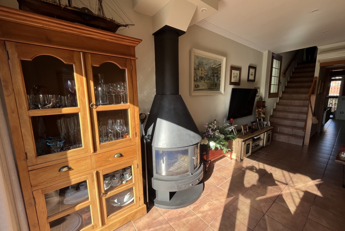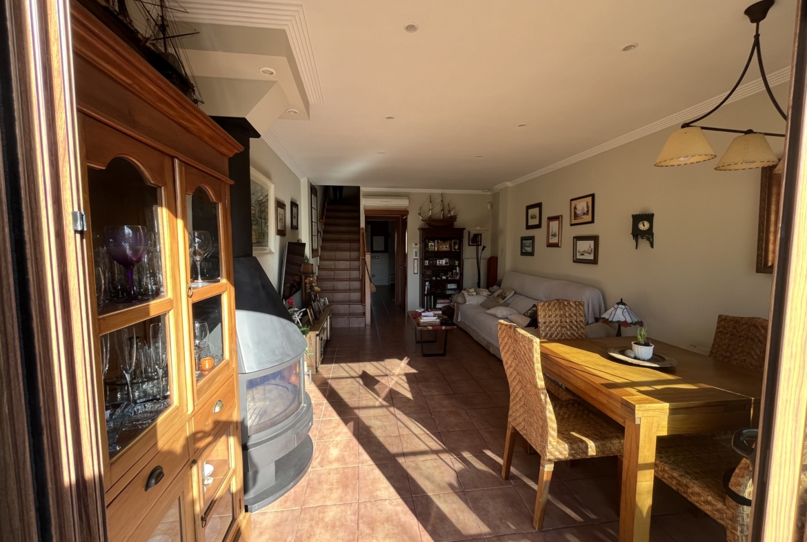 ¡Oportunidad Única en Cubelles: Impecable Vivienda Reformada en 2014 a Escasos Metros de la Playa!Descubre esta magnífica vivienda de 4 plantas, completamente reformada en 2014 (cableado, tuberías, etc.), que combina comodidad y estilo en una ubicación ideal, a pocos minutos de la playa.Distribución:-Garaje (52 m²): Acceso directo a la vivienda mediante puerta blindada. Incluye un armario de aluminio de 4 cuerpos, de suelo a techo y totalmente cerrado.-Planta Baja (54 m²): Amplia cocina, aseo de cortesía y salón comedor con chimenea funcional. Acceso directo a la piscina y a una encantadora terraza ajardinada.-Primera Planta (47 m²): Habitación doble con armario empotrado, baño completo con ducha y combidetta, y otra habitación doble con armario empotrado y terraza exterior de 5 m².-Segunda Planta (31 m²): Habitación abuhardillada con armario empotrado y baño completo con bañera y combidetta. Además, cuenta con una amplia terraza/solárium ideal para disfrutar del sol.Características Adicionales:-Sin cables visibles de corriente ni de datos en toda la casa.-Acceso directo a una amplia piscina comunitaria desde la planta baja.-Aire acondicionado con bomba de calor en todas las habitaciones y salón, con tres unidades exteriores.-Calefacción por gas natural.-Rejas en todas las ventanas y puertas blindadas en la comunidad y el garaje.-Mosquiteras practicables en todas las ventanas.-Sistema de descalcificación y ósmosis inversa.-Riego automático y sistema de pulverización antimosquitos.-Equipamiento de cocina: horno, encimera y microondas de solo 1 año.-Conexión de datos por fibra óptica en planta baja y toma de datos por cable en la habitación del lado norte de la primera planta.No dejes pasar esta oportunidad de adquirir un hogar que lo tiene todo, a escasos metros de la playa en Cubelles. ¡Contáctanos para más información o para concertar una visita!~