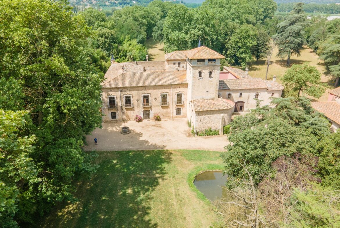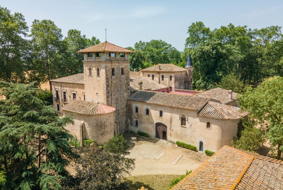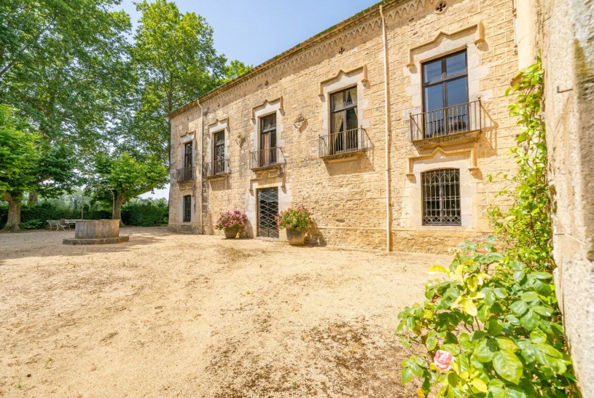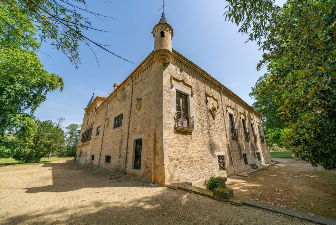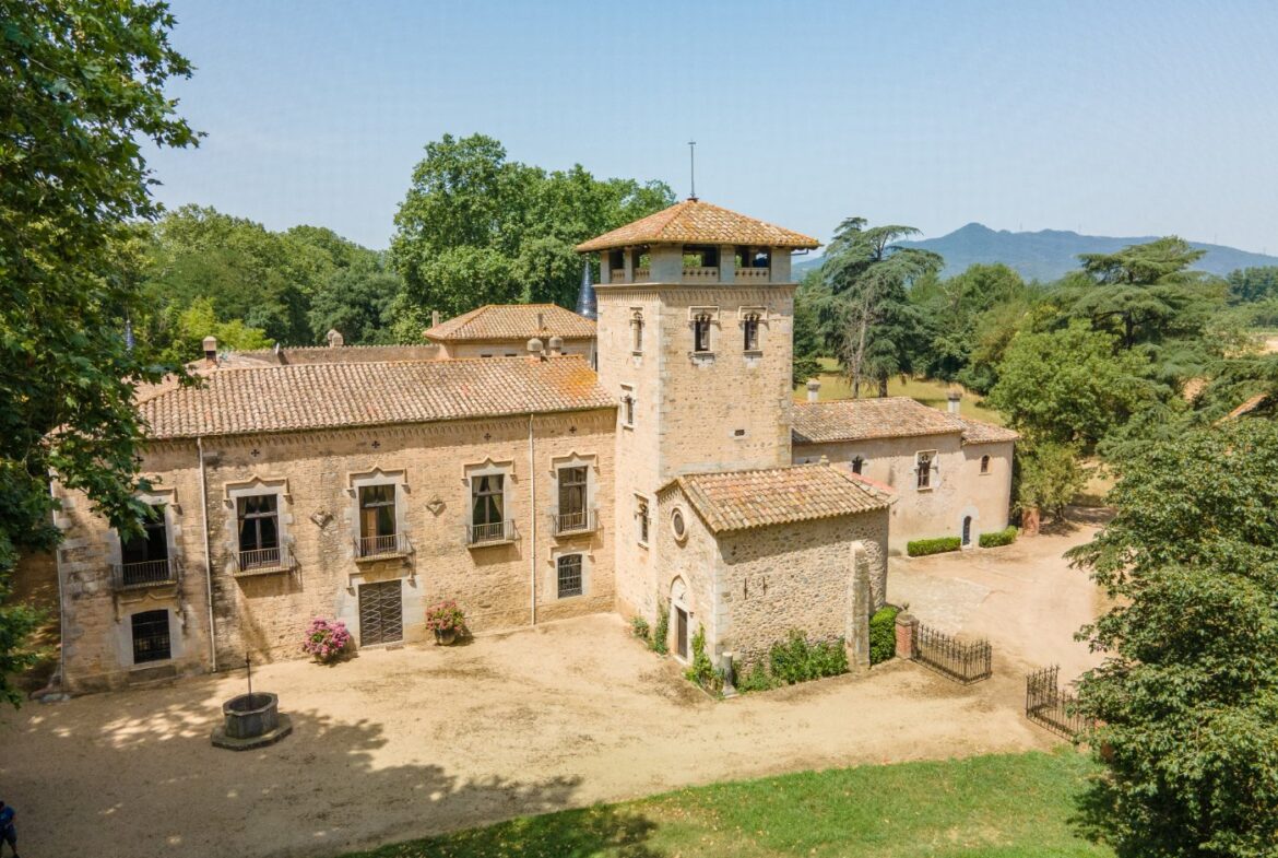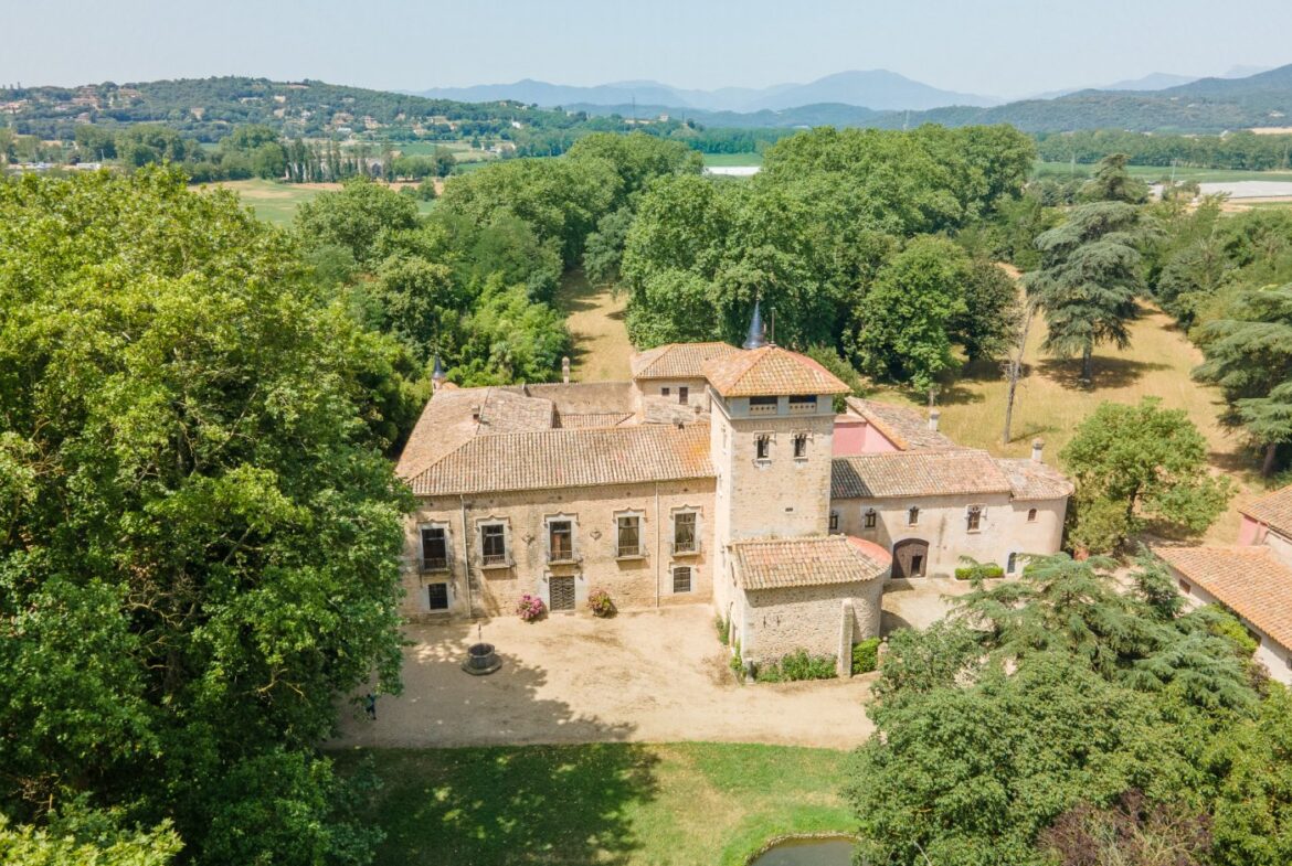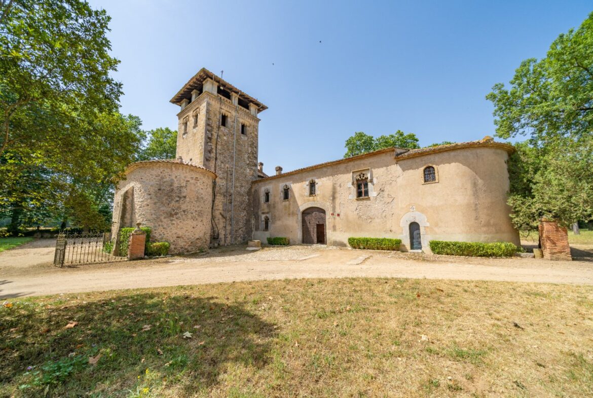 En exclusiva un palacio que rebosa personalidad y carácter, única e irrepetible. Con una peculiar distribución y elementos cargados de historia.~~La antigua masía del siglo XVII, en el siglo XIX amplia sus propiedades y a la vez experimenta e innova en técnicas agrícolas. El resultado final de su arquitectura es la suma de la construcción histórica y las incorporaciones de elementos decorativos neo-renacentista – algunos procedentes de otras construcciones con la intención de ennoblecer el conjunto-, formados especialmente por torretas con tejados en forma de cono. También tiene una gran torre cuadrada con una galería superior; el tejado acabado en punta y una capilla adosada de una nave y ábside semicircular.~En la actualidad es el resultado de la construcción de un cuerpo rectangular con dos patios interiores al lado de una antigua masía.~El edificio principal, junto con la torre, son de carácter neomedieval. Las paredes portantes son de mampostería. Las fachadas son rebozadas imitando un sillero.~Los balcones presentan losa de piedra moldurada y barandilla de hierro. La cubierta es de teja árabe acabada con un alero combinado de ladrillo y teja. La torre presenta varias ventanas neogóticas con arcos conopiales, arabescos y guardapolvos. ~~Entrando en la propiedad lo primero que nos encontramos es la primitiva edificación del Mas Ribot, que forma parte de la misma y la cual, actualmente, es la casa de los masoveros.~~Esta singular finca se encuentra incluida en el catálogo de edificios a proteger, con categoria BICN (Bien de interés cultural Nacional) que cuenta con aproximadamente de 4.900 metros cuadrados construidos en su totalidad (contando anexos, caballerizas…) y rodeado de un amplio terreno de 32 hectáreas donde alberga un amplio jardín, gran variedad de árboles centenarios y campo.~~Una propiedad con enormes posibilidades de explotación hotelera y/o agraria, con excelentes comunicaciones donde la estación del AVE, el aeropuerto y la ciudad de Girona se encuentran a pocos km; y a tan solo 30 minutos de la costa. ~~~