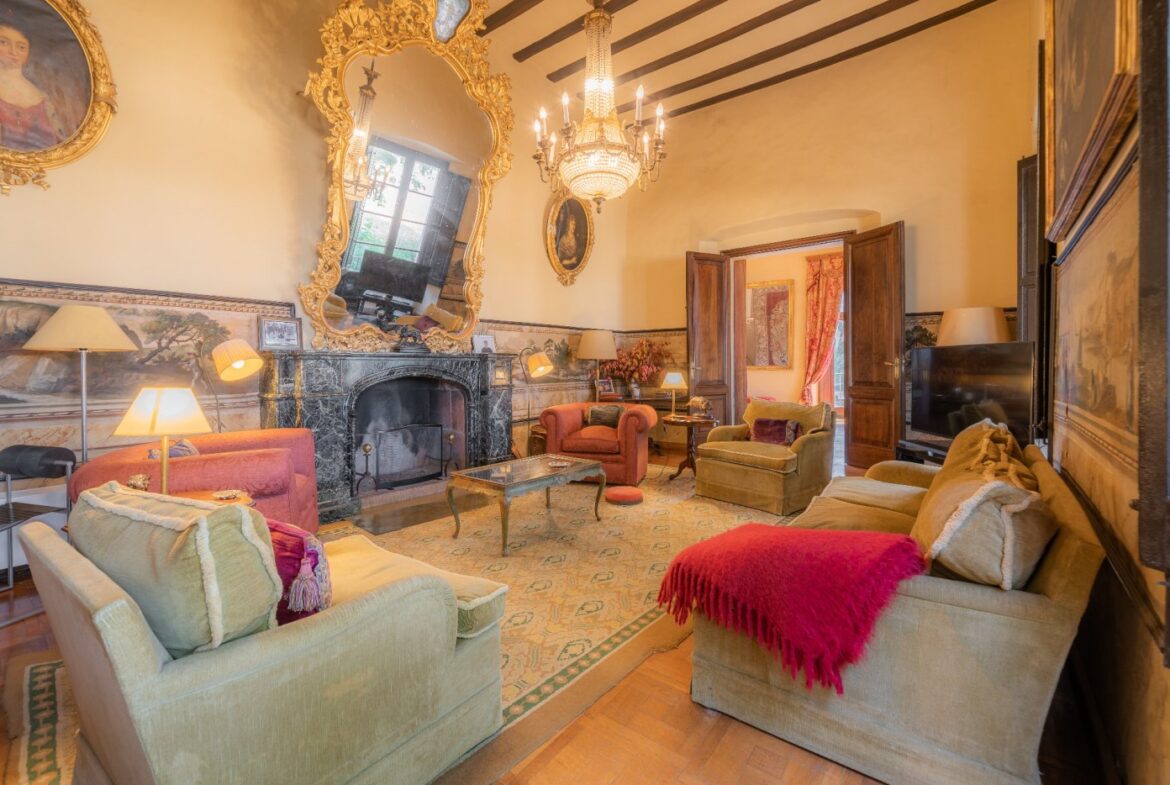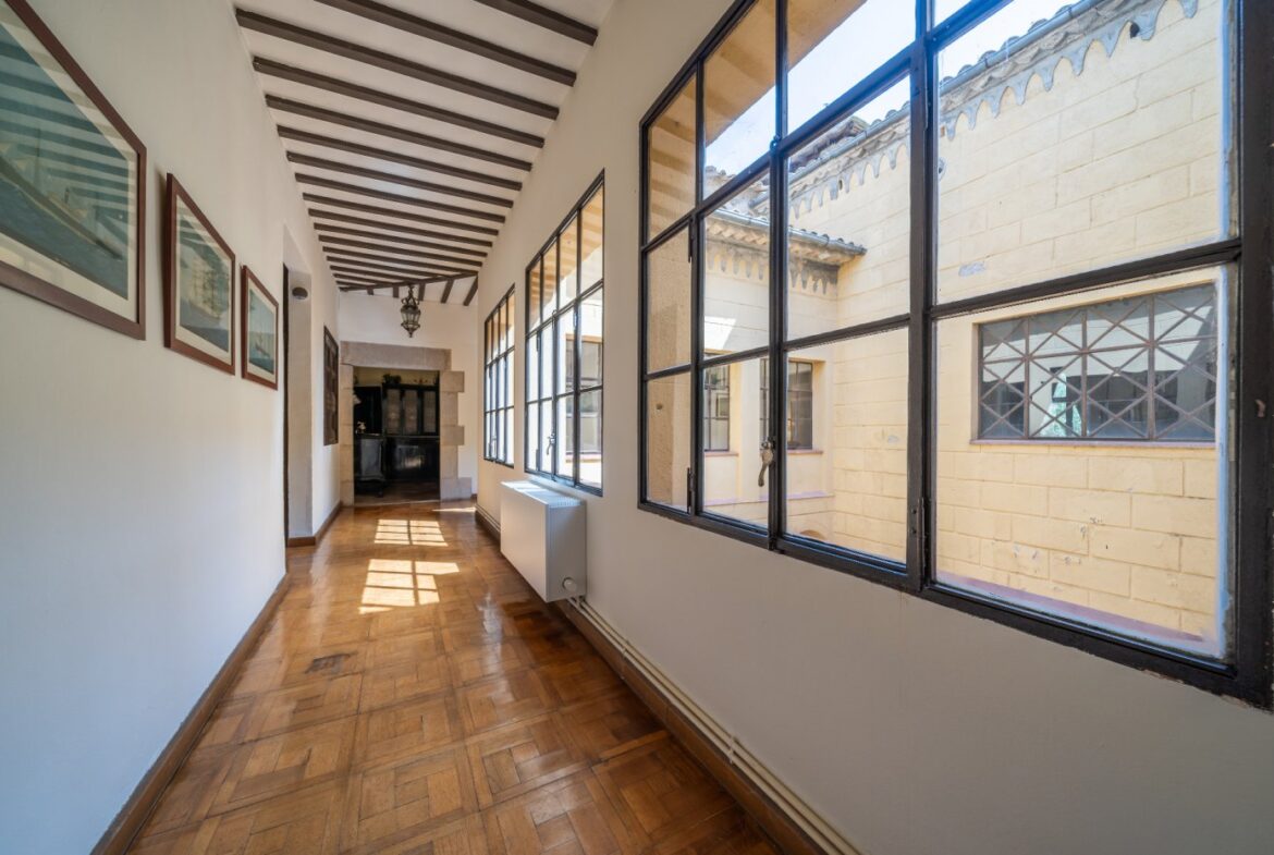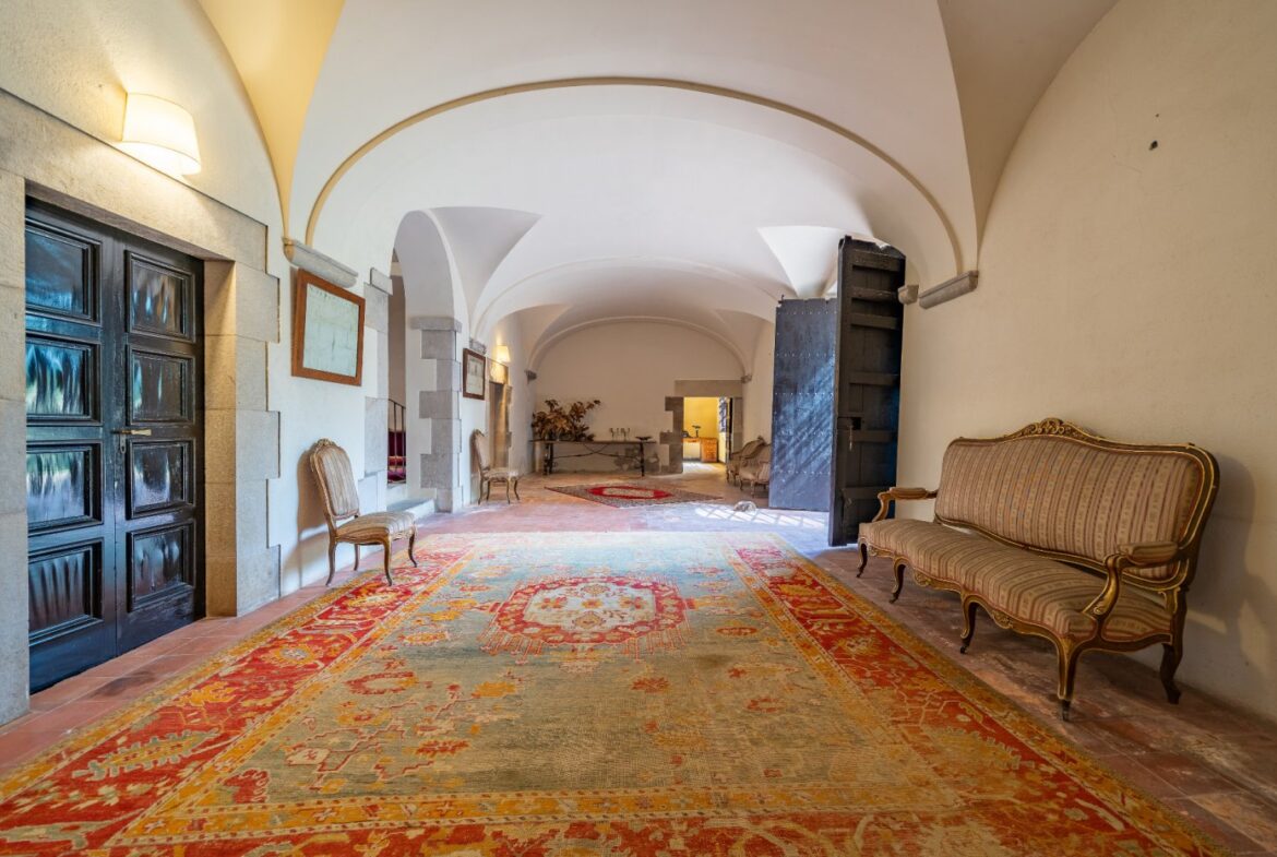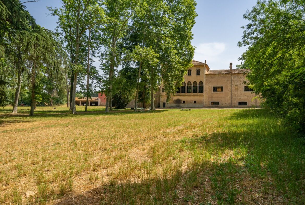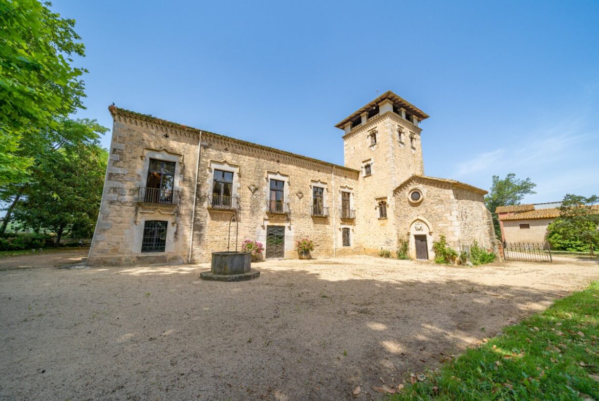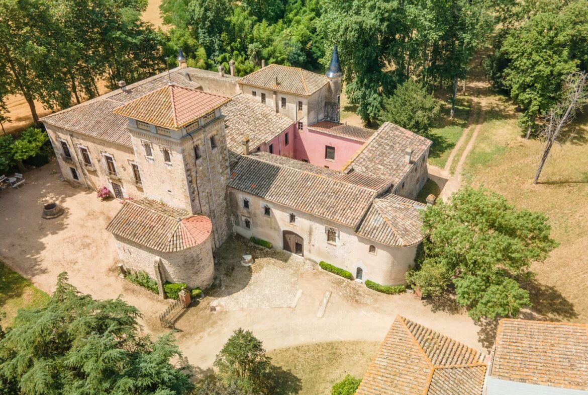 En exclusiva un palacio que rebosa personalidad y carácter, única e irrepetible. Con una peculiar distribución y elementos cargados de historia.~~La antigua masía del siglo XVII, en el siglo XIX amplia sus propiedades y a la vez experimenta e innova en técnicas agrícolas. El resultado final de su arquitectura es la suma de la construcción histórica y las incorporaciones de elementos decorativos neo-renacentista – algunos procedentes de otras construcciones con la intención de ennoblecer el conjunto-, formados especialmente por torretas con tejados en forma de cono. También tiene una gran torre cuadrada con una galería superior; el tejado acabado en punta y una capilla adosada de una nave y ábside semicircular.~En la actualidad es el resultado de la construcción de un cuerpo rectangular con dos patios interiores al lado de una antigua masía.~El edificio principal, junto con la torre, son de carácter neomedieval. Las paredes portantes son de mampostería. Las fachadas son rebozadas imitando un sillero.~Los balcones presentan losa de piedra moldurada y barandilla de hierro. La cubierta es de teja árabe acabada con un alero combinado de ladrillo y teja. La torre presenta varias ventanas neogóticas con arcos conopiales, arabescos y guardapolvos. ~~Entrando en la propiedad lo primero que nos encontramos es la primitiva edificación del Mas Ribot, que forma parte de la misma y la cual, actualmente, es la casa de los masoveros.~~Esta singular finca se encuentra incluida en el catálogo de edificios a proteger, con categoria BICN (Bien de interés cultural Nacional) que cuenta con aproximadamente de 4.900 metros cuadrados construidos en su totalidad (contando anexos, caballerizas…) y rodeado de un amplio terreno de 32 hectáreas donde alberga un amplio jardín, gran variedad de árboles centenarios y campo.~~Una propiedad con enormes posibilidades de explotación hotelera y/o agraria, con excelentes comunicaciones donde la estación del AVE, el aeropuerto y la ciudad de Girona se encuentran a pocos km; y a tan solo 30 minutos de la costa. ~~~