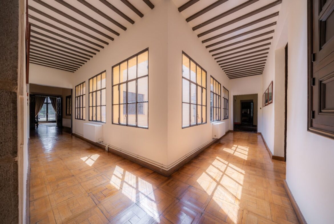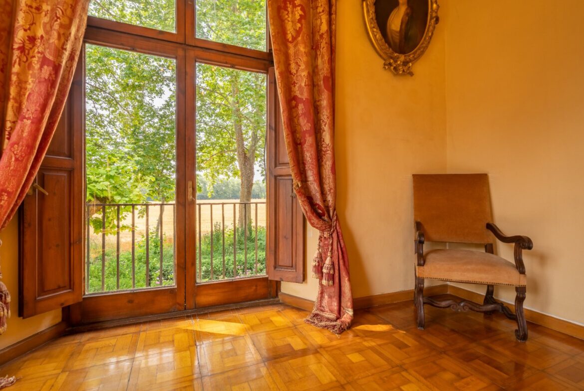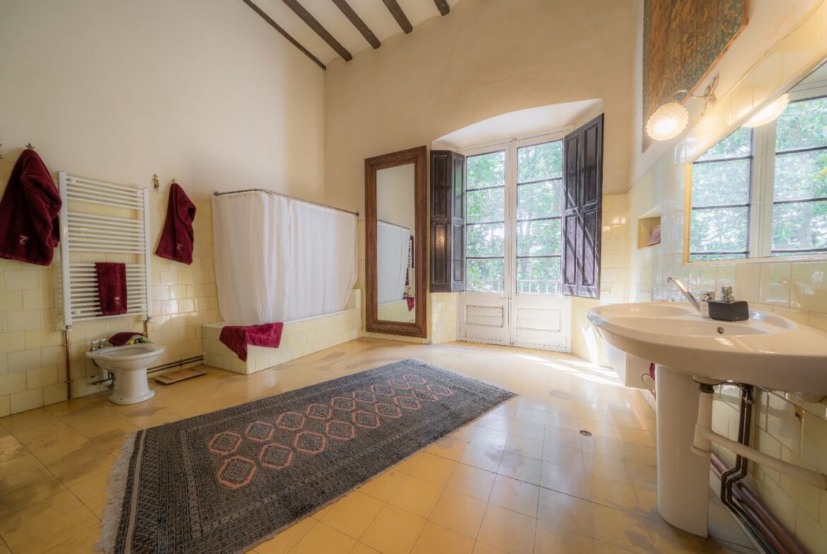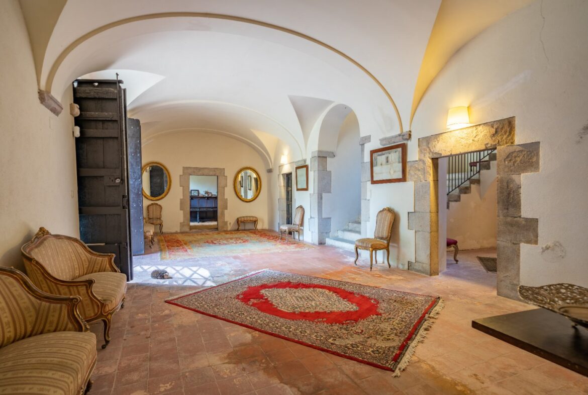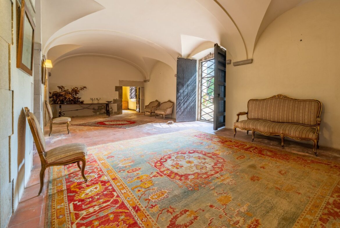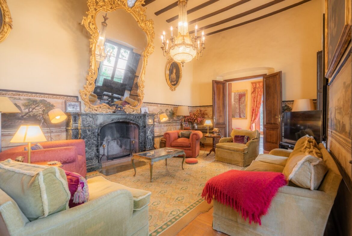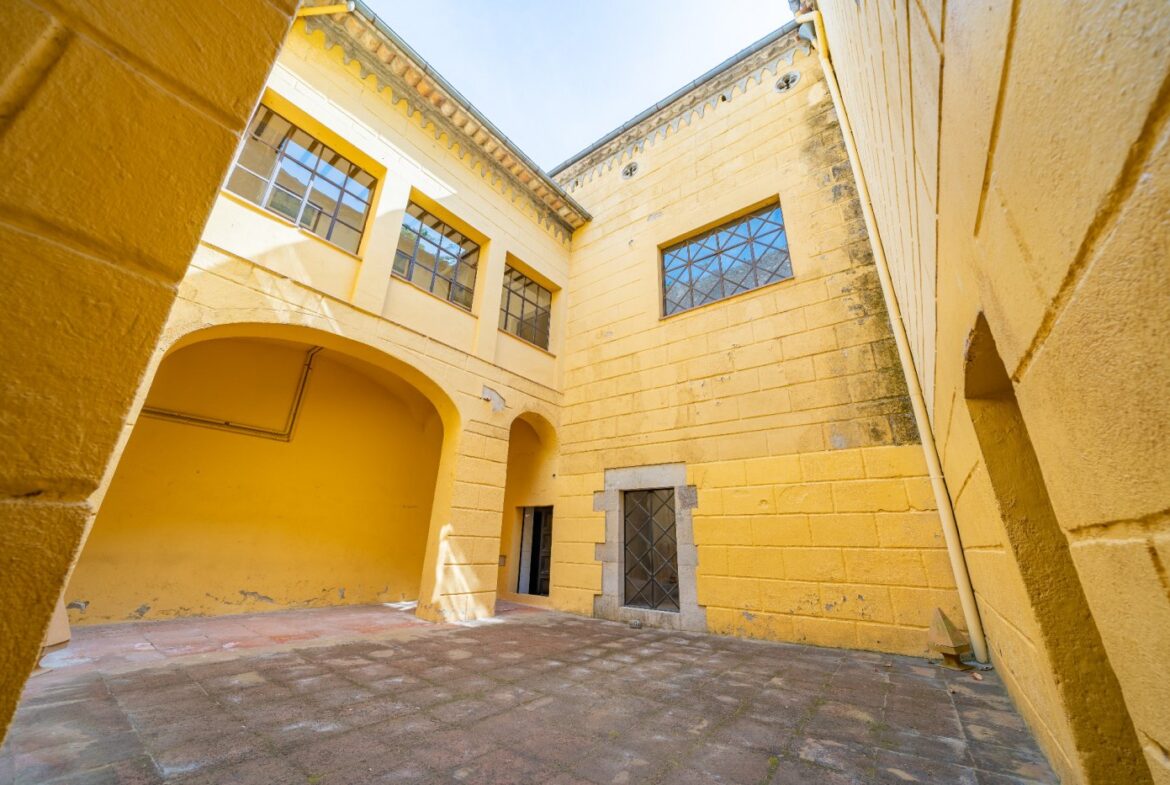 En exclusiva un palacio que rebosa personalidad y carácter, única e irrepetible. Con una peculiar distribución y elementos cargados de historia.~~La antigua masía del siglo XVII, en el siglo XIX amplia sus propiedades y a la vez experimenta e innova en técnicas agrícolas. El resultado final de su arquitectura es la suma de la construcción histórica y las incorporaciones de elementos decorativos neo-renacentista – algunos procedentes de otras construcciones con la intención de ennoblecer el conjunto-, formados especialmente por torretas con tejados en forma de cono. También tiene una gran torre cuadrada con una galería superior; el tejado acabado en punta y una capilla adosada de una nave y ábside semicircular.~En la actualidad es el resultado de la construcción de un cuerpo rectangular con dos patios interiores al lado de una antigua masía.~El edificio principal, junto con la torre, son de carácter neomedieval. Las paredes portantes son de mampostería. Las fachadas son rebozadas imitando un sillero.~Los balcones presentan losa de piedra moldurada y barandilla de hierro. La cubierta es de teja árabe acabada con un alero combinado de ladrillo y teja. La torre presenta varias ventanas neogóticas con arcos conopiales, arabescos y guardapolvos. ~~Entrando en la propiedad lo primero que nos encontramos es la primitiva edificación del Mas Ribot, que forma parte de la misma y la cual, actualmente, es la casa de los masoveros.~~Esta singular finca se encuentra incluida en el catálogo de edificios a proteger, con categoria BICN (Bien de interés cultural Nacional) que cuenta con aproximadamente de 4.900 metros cuadrados construidos en su totalidad (contando anexos, caballerizas…) y rodeado de un amplio terreno de 32 hectáreas donde alberga un amplio jardín, gran variedad de árboles centenarios y campo.~~Una propiedad con enormes posibilidades de explotación hotelera y/o agraria, con excelentes comunicaciones donde la estación del AVE, el aeropuerto y la ciudad de Girona se encuentran a pocos km; y a tan solo 30 minutos de la costa. ~~~