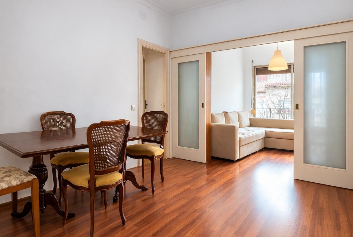 Si eres de los que prefieren crear su propia vivienda en lugar de adaptarse a la reforma de otros, este piso puede encajar contigo.~~Aquí no estás pagando por acabados que quizás no elegirías.~Estás comprando espacio, luz natural y una distribución con mucho potencial para diseñar tu hogar a tu manera.~~La vivienda se sitúa en segunda planta de edificio sin ascensor y cuenta con una base muy interesante para quien busca un piso funcional que pueda adaptarse con el tiempo.~~Uno de sus grandes atractivos es su orientación con sol de mañanas, algo que se percibe especialmente en las estancias que dan a la calle.~~El piso dispone de:~~Tres habitaciones: una doble y dos individuales de buen tamaño.~~Salón-comedor exterior a la calle, con salida directa al balcón y entrada de luz natural durante buena parte de la mañana.~~Dormitorio principal también exterior, con acceso al mismo balcón.~~Una tercera estancia exterior, que aporta aún más luminosidad a la vivienda.~~En total, tres de las estancias principales son completamente exteriores, lo que aporta una sensación de amplitud y luz muy agradable.~~Además, la vivienda cuenta con:~~Cocina independiente.~~Baño de tres piezas.~~Zona de plancha conectada con una galería, actualmente adaptada como pequeño aseo.~~La cocina y una de las habitaciones ventilan a un patio de luces muy amplio, lo que permite mantener buena ventilación y claridad en estas zonas interiores.~~Es el tipo de vivienda que permite reorganizar espacios, actualizar acabados y diseñar un hogar a medida, partiendo de una base con buena distribución, tres dormitorios y estancias exteriores.~~Si sabes ver el potencial de un piso con buena orientación, balcón y distribución clara, aquí tienes una oportunidad para crear un hogar a tu medida.~~Ofrecido por Immobiliària Barcelona® – Un club de servicios inmobiliarios a su disposición.~~El precio no incluye impuestos legalmente aplicables.~El inmueble se entrega sin bienes muebles, incluso si aparecen en las fotografías.~~Puedes consultar el cálculo de impuestos en:~atc.gencat.cat~