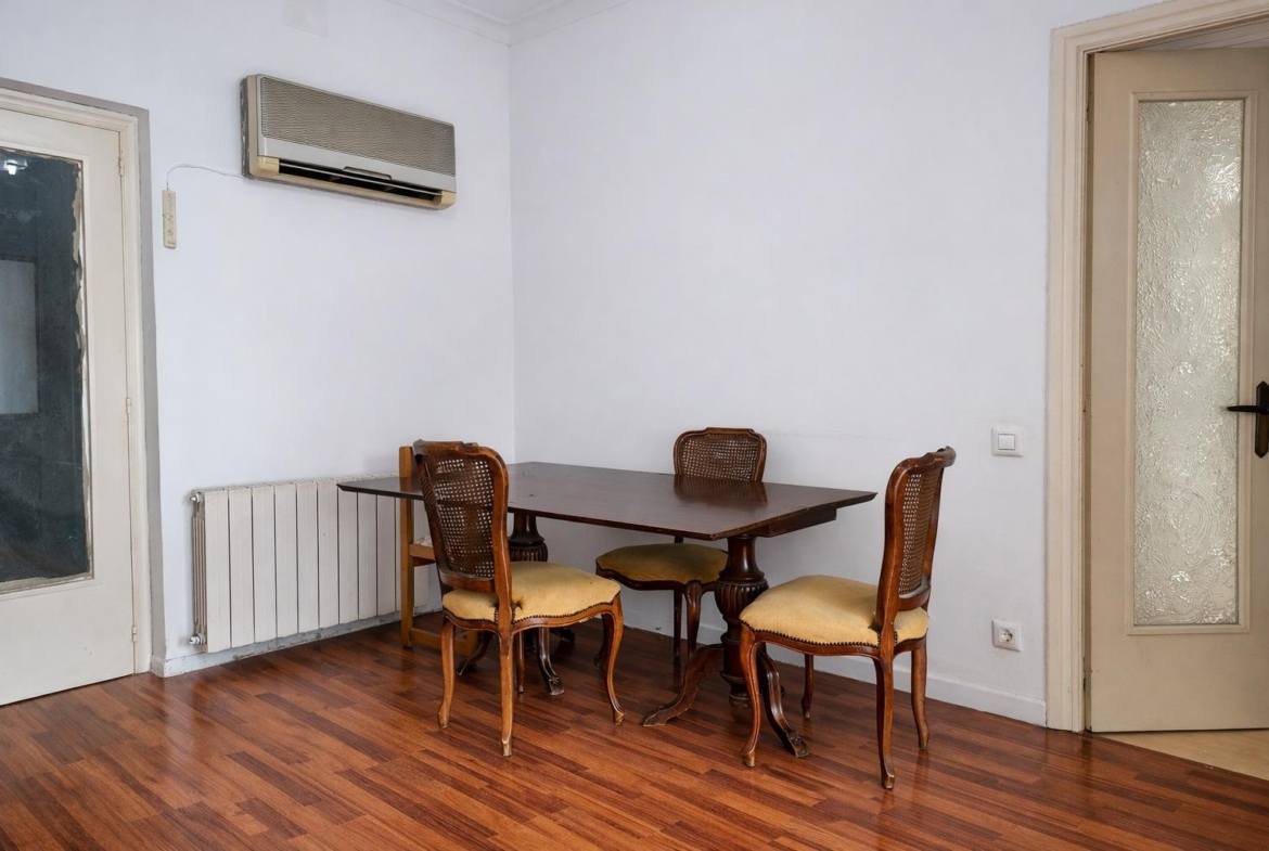 Si eres de los que prefieren crear su propia vivienda en lugar de adaptarse a la reforma de otros, este piso puede encajar contigo.~~Aquí no estás pagando por acabados que quizás no elegirías.~Estás comprando espacio, luz natural y una distribución con mucho potencial para diseñar tu hogar a tu manera.~~La vivienda se sitúa en segunda planta de edificio sin ascensor y cuenta con una base muy interesante para quien busca un piso funcional que pueda adaptarse con el tiempo.~~Uno de sus grandes atractivos es su orientación con sol de mañanas, algo que se percibe especialmente en las estancias que dan a la calle.~~El piso dispone de:~~Tres habitaciones: una doble y dos individuales de buen tamaño.~~Salón-comedor exterior a la calle, con salida directa al balcón y entrada de luz natural durante buena parte de la mañana.~~Dormitorio principal también exterior, con acceso al mismo balcón.~~Una tercera estancia exterior, que aporta aún más luminosidad a la vivienda.~~En total, tres de las estancias principales son completamente exteriores, lo que aporta una sensación de amplitud y luz muy agradable.~~Además, la vivienda cuenta con:~~Cocina independiente.~~Baño de tres piezas.~~Zona de plancha conectada con una galería, actualmente adaptada como pequeño aseo.~~La cocina y una de las habitaciones ventilan a un patio de luces muy amplio, lo que permite mantener buena ventilación y claridad en estas zonas interiores.~~Es el tipo de vivienda que permite reorganizar espacios, actualizar acabados y diseñar un hogar a medida, partiendo de una base con buena distribución, tres dormitorios y estancias exteriores.~~Si sabes ver el potencial de un piso con buena orientación, balcón y distribución clara, aquí tienes una oportunidad para crear un hogar a tu medida.~~Ofrecido por Immobiliària Barcelona® – Un club de servicios inmobiliarios a su disposición.~~El precio no incluye impuestos legalmente aplicables.~El inmueble se entrega sin bienes muebles, incluso si aparecen en las fotografías.~~Puedes consultar el cálculo de impuestos en:~atc.gencat.cat~