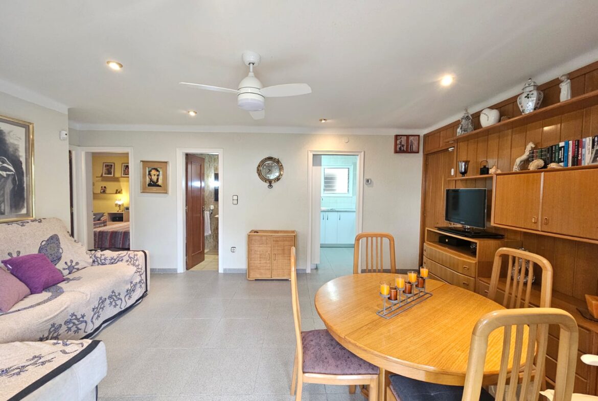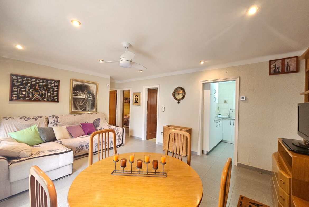 Este encantador piso de 2 habitaciones ( uno de ellos con salida a un patio interior ) y un baño se encuentra en una ubicación privilegiada, a tan solo 50 metros de la playa de Canyelles. La vivienda destaca por su ambiente acogedor y funcional, ideal tanto como residencia permanente como para disfrutar de una escapada de verano.El piso cuenta con una espaciosa terraza de 14 m², perfecta para relajarse y disfrutar de momentos al aire libre. Desde la terraza se pueden apreciar pequeñas vistas al mar, añadiendo un toque especial al entorno. La cercanía a la playa permite disfrutar de la brisa marina y el sonido relajante de las olas.Con una distribución bien aprovechada, este piso ofrece un equilibrio perfecto entre comodidad y estilo en una de las zonas más atractivas de la costa.Incluye parquing exterior !~