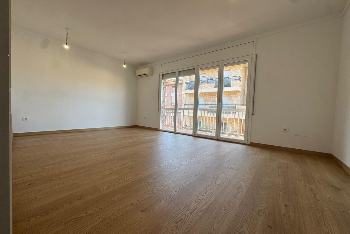 Piso totalmente reformado a estrenar.~Distribuido en 4 habitaciones; 3 dobles y 1 individual.~1 baño completo con plato de ducha.~Cocina impecable, moderna y funcional. Salida a galeria cerrada, zona de lavado y caldera.~Comedor amplio y luminoso, con salida al balcón de 7m².~Todas las ventanas y balcón disponen de cierres de aluminio.~Ventanas oscilobatientes y con mosquiteras.~Se incluye en el precio un amplio trastero.~La finca es VPO( Vivienda de Protección Oficial) en vigor.~Muebles, Impuestos, gastos de notaria y registro no incluidos~~