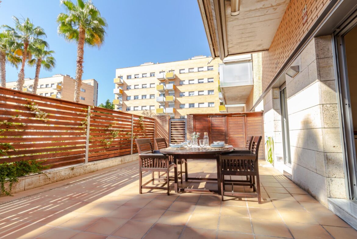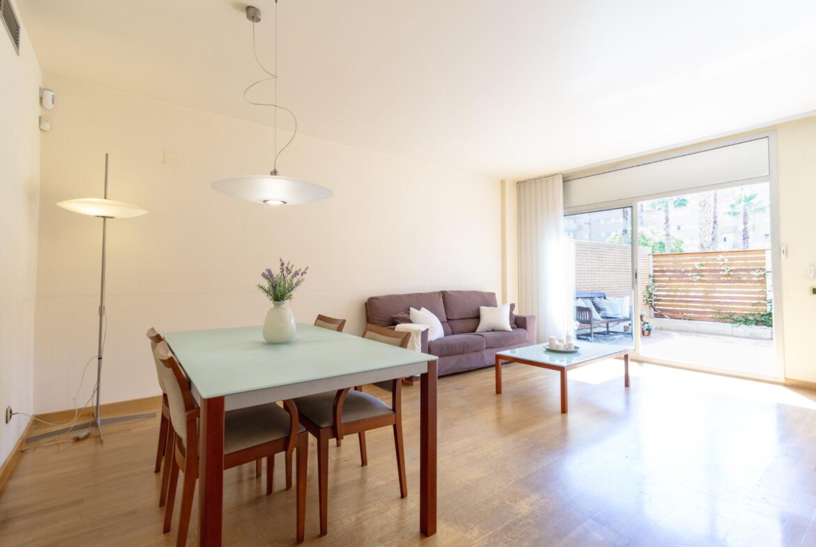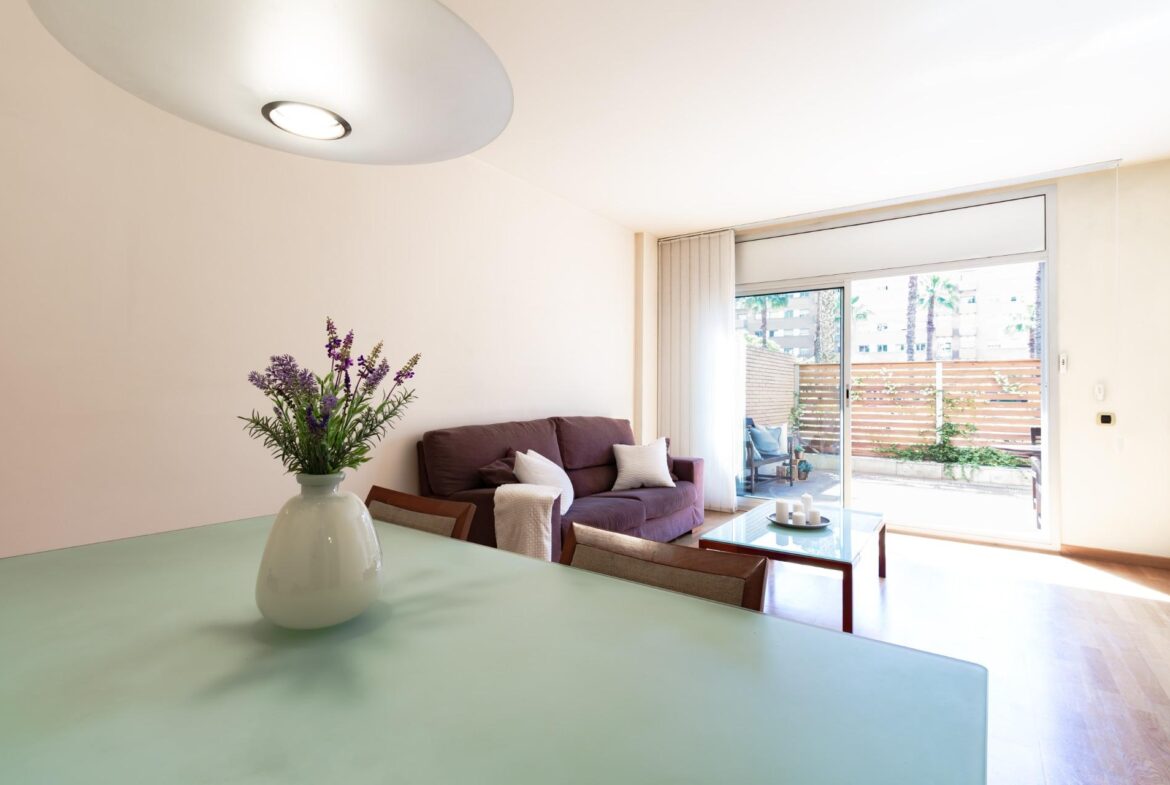 Una vivienda así no se encuentra todos los días. Una terraza así cambia tu forma de vivir. Privada, amplia, conectada al salón y a la cocina. Y con una puerta de acceso directo al jardín con piscina comunitaria. Todo ello en un entorno tranquilo, familiar y bien conectado.~~Desayunar fuera, trabajar con luz natural, improvisar una comida con amigos o simplemente disfrutar de un rato de calma. Esta vivienda en planta baja de la Vila Olímpica del Poblenou te ofrece ese espacio exterior que tanto cuesta encontrar en Barcelona. Con 105 m² construidos y una terraza privada de 42 m², que se convierte en el centro de la casa cuando llega el buen tiempo.~~La vivienda destaca por su distribución funcional y su equilibrio entre comodidad interior y vida al aire libre. El salón es amplio y luminoso, y la cocina, independiente y con zona office. Ambas estancias, con salida directa a la terraza, invitan a vivir con las puertas abiertas, con fluidez y naturalidad.~~La zona de noche queda bien diferenciada y ofrece tres dormitorios: uno en suite con baño privado y dos habitaciones dobles. Todas ellas con armarios empotrados. Y un segundo baño completo da servicio al resto de la vivienda.~~El confort se mantiene todo el año gracias a la calefacción a gas y al aire acondicionado frío/calor por conductos. Los suelos de parquet, los cerramientos con doble acristalamiento y la carpintería de calidad refuerzan la sensación de hogar cuidado. Incluye también plaza de aparcamiento y trastero privado en la misma finca, para mayor comodidad.~~El edificio, construido en 2004, cuenta con piscina, jardín, parque infantil, zonas de paseo y servicio de vigilancia 24 h. Un entorno cuidado y seguro, pensado para quienes valoran la tranquilidad sin renunciar a servicios y conexión.~~La ubicación es otro de sus puntos fuertes. A solo unos minutos caminando tienes la playa, el puerto y el paseo marítimo, el parque de la Ciutadella, centros deportivos, comercios, colegios y supermercados. Además, la conexión con el resto de la ciudad es excelente, gracias a la proximidad de varias líneas de metro, tranvía y autobuses.~Esta es la vivienda ideal para quienes buscan espacio, privacidad y entorno, sin alejarse de la ciudad.~~Se entrega vacío, aunque se vean objetos en las fotografías. Los impuestos, gastos de notaría y gestoría no están incluidos en el precio de venta.~