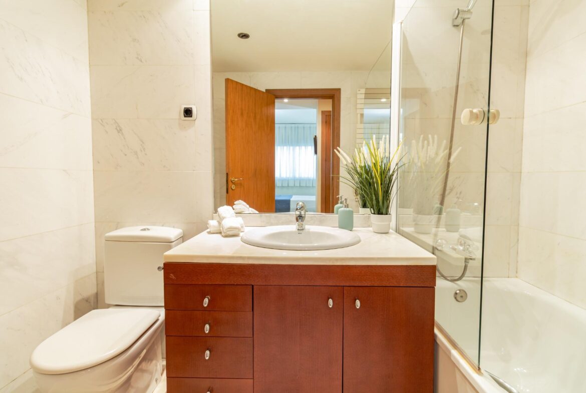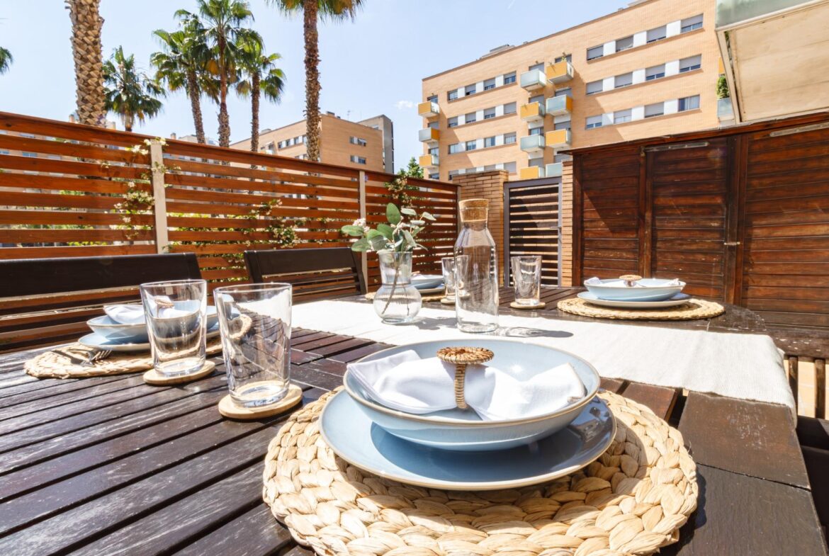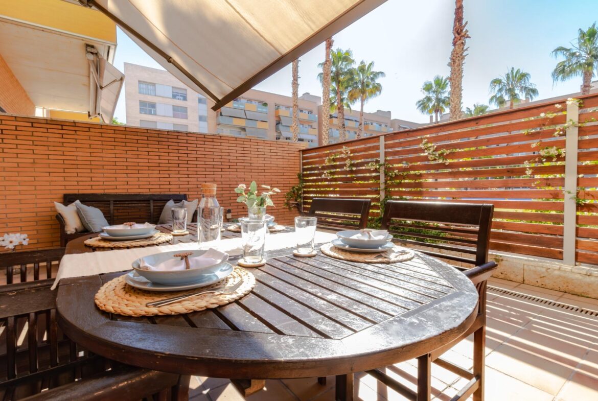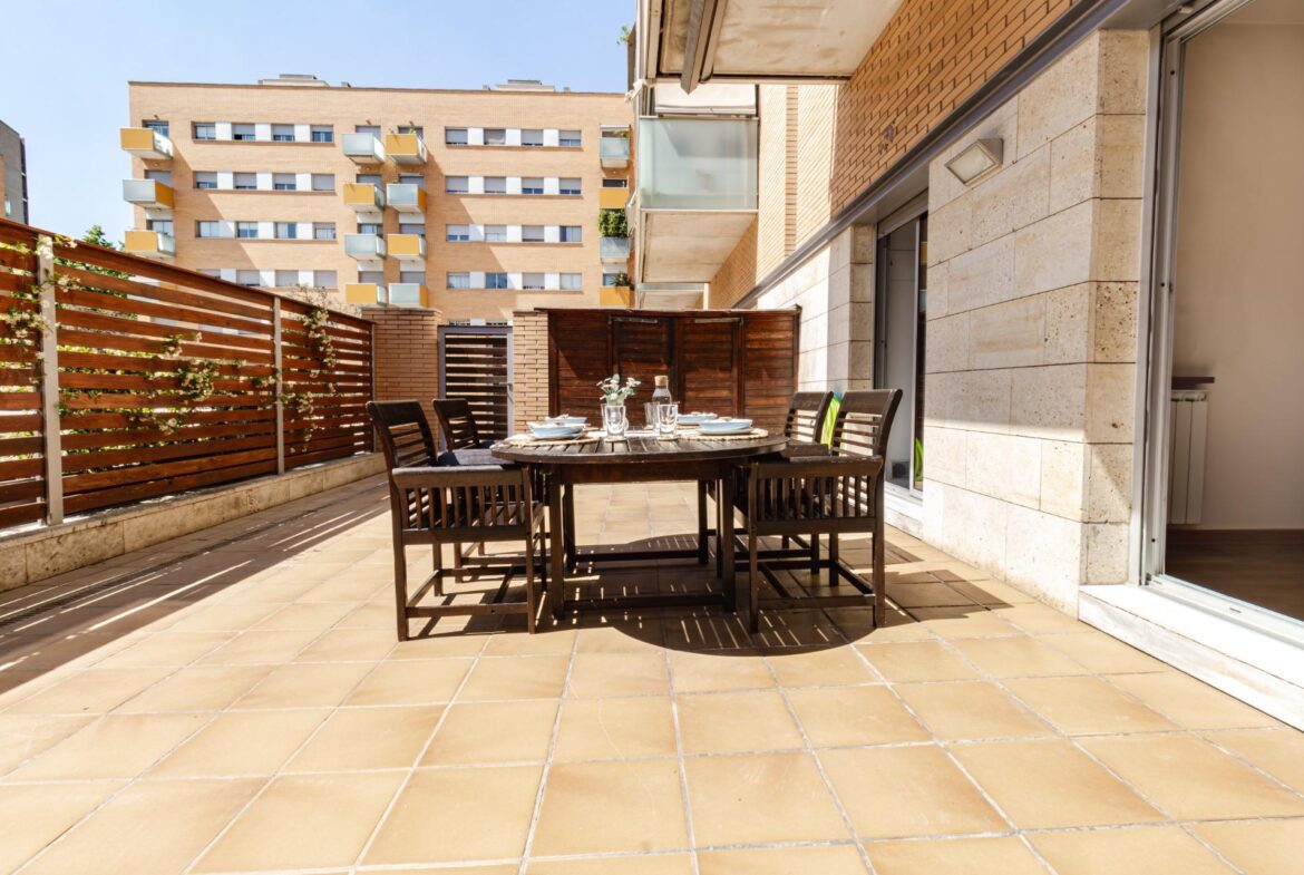 Una vivienda así no se encuentra todos los días. Una terraza así cambia tu forma de vivir. Privada, amplia, conectada al salón y a la cocina. Y con una puerta de acceso directo al jardín con piscina comunitaria. Todo ello en un entorno tranquilo, familiar y bien conectado.~~Desayunar fuera, trabajar con luz natural, improvisar una comida con amigos o simplemente disfrutar de un rato de calma. Esta vivienda en planta baja de la Vila Olímpica del Poblenou te ofrece ese espacio exterior que tanto cuesta encontrar en Barcelona. Con 105 m² construidos y una terraza privada de 42 m², que se convierte en el centro de la casa cuando llega el buen tiempo.~~La vivienda destaca por su distribución funcional y su equilibrio entre comodidad interior y vida al aire libre. El salón es amplio y luminoso, y la cocina, independiente y con zona office. Ambas estancias, con salida directa a la terraza, invitan a vivir con las puertas abiertas, con fluidez y naturalidad.~~La zona de noche queda bien diferenciada y ofrece tres dormitorios: uno en suite con baño privado y dos habitaciones dobles. Todas ellas con armarios empotrados. Y un segundo baño completo da servicio al resto de la vivienda.~~El confort se mantiene todo el año gracias a la calefacción a gas y al aire acondicionado frío/calor por conductos. Los suelos de parquet, los cerramientos con doble acristalamiento y la carpintería de calidad refuerzan la sensación de hogar cuidado. Incluye también plaza de aparcamiento y trastero privado en la misma finca, para mayor comodidad.~~El edificio, construido en 2004, cuenta con piscina, jardín, parque infantil, zonas de paseo y servicio de vigilancia 24 h. Un entorno cuidado y seguro, pensado para quienes valoran la tranquilidad sin renunciar a servicios y conexión.~~La ubicación es otro de sus puntos fuertes. A solo unos minutos caminando tienes la playa, el puerto y el paseo marítimo, el parque de la Ciutadella, centros deportivos, comercios, colegios y supermercados. Además, la conexión con el resto de la ciudad es excelente, gracias a la proximidad de varias líneas de metro, tranvía y autobuses.~Esta es la vivienda ideal para quienes buscan espacio, privacidad y entorno, sin alejarse de la ciudad.~~Se entrega vacío, aunque se vean objetos en las fotografías. Los impuestos, gastos de notaría y gestoría no están incluidos en el precio de venta.~