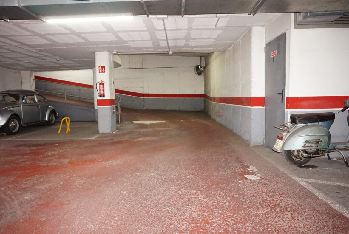 Plaza de aparcamiento + trastero situado en edificio céntrico de Girona. Capacidad para un coche grande y trastero de 1 metro cuadrado anexado a la plaza. Fácil acceso con poca maniobra.~