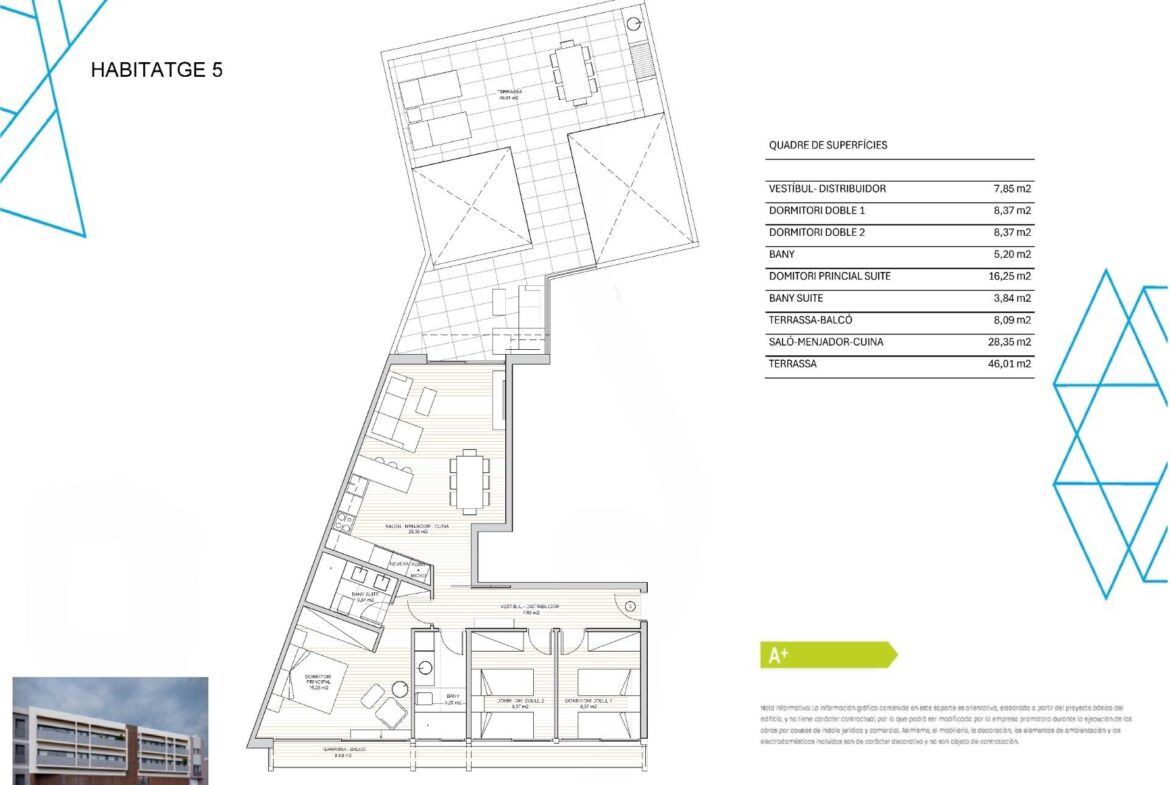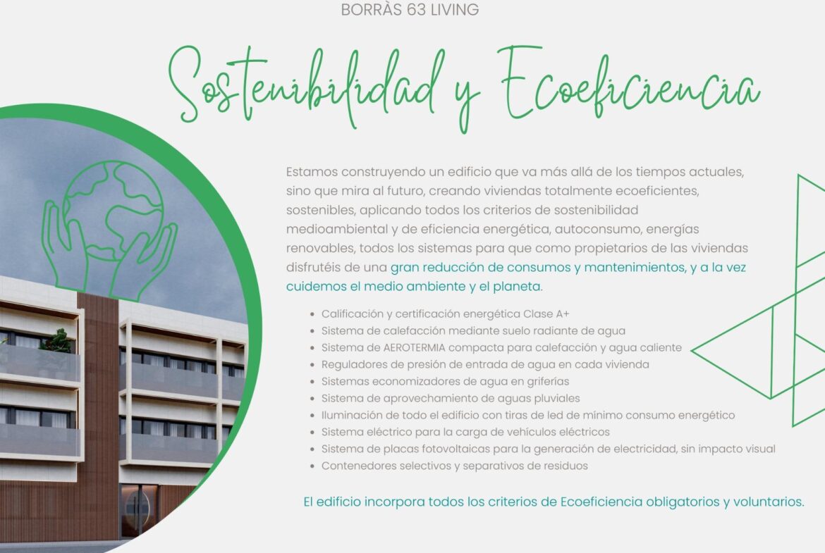 ¡Descubre tu nuevo hogar en la exclusiva zona residencial de la Creu Alta, Sabadell!~~Este impresionante piso en primera planta de 126 m² te ofrece lujo, confort y sostenibilidad en uno de los proyectos residenciales más exclusivos de Sabadell: Borràs 63 Living. Ubicado en una de las zonas más demandadas, esta promoción combina diseño vanguardista, tecnología ecoeficiente y una ubicación privilegiada.~~Características destacadas de la vivienda:~3 dormitorios dobles, incluyendo una suite principal de 16,25 m² con armario empotrado y dos dormitorios adicionales de 8,37 m² cada uno, perfectos para familias o quienes buscan espacio adicional.~~2 baños completos con revestimientos de porcelánico de alta calidad y accesorios modernos.~~Un amplio salón-comedor que se abre directamente a una terraza de 48 m², situada a pie de salón, ideal para disfrutar de momentos al aire libre, organizar barbacoas o relajarse en un entorno privado.~~Diseño y sostenibilidad:~Acabados de alta gama: cocinas de diseño abierto de la prestigiosa marca BULTHAUP, detalles en madera y suelos de porcelánico que aportan elegancia y calidez.~~Tecnologías ecoeficientes: sistema de aerotermia, fachada con aislamiento térmico y clase energética A para un hogar sostenible y eficiente. Suelo radiante.~~Persianas motorizadas que ofrecen comodidad y control total de la luz natural.~~Instalación de recarga para vehículos eléctricos en cada plaza de garaje.~~Ubicación privilegiada en Creu Alta, Sabadell:~Ubicado en Calle Borràs 63, en una de las zonas más demandadas de Sabadell, Borràs 63 Living ofrece:~~Acceso rápido a la estación de Ferrocarrils Creu Alta, El Corte Inglés, Parc Catalunya y el Mercat Central.~~Excelentes servicios, zonas verdes y conexiones con toda la ciudad.~~Un edificio que redefine el lujo urbano:~Este exclusivo edificio de solo 11 viviendas es un oasis contemporáneo donde la elegancia y la sostenibilidad convergen. ~~Cada residencia ha sido diseñada para ofrecer un estilo de vida urbano de primera categoría, con:~~Terrazas privadas y solárium que te conectan con el exterior.~~Fachada iluminada que destaca su arquitectura vanguardista al caer la noche.~~Detalles impecables que reflejan calidez, confort y modernidad.~~Obra en marcha – Entrega 2º semestre 2025~¡No pierdas la oportunidad de ser parte de esta promoción exclusiva! Con últimas unidades disponibles, ahora es el momento de asegurar tu futuro hogar en uno de los proyectos residenciales más destacados de Sabadell.~~Contacta con nosotros hoy mismo y descubre por qué Borràs 63 Living es el lugar donde siempre has querido vivir.~