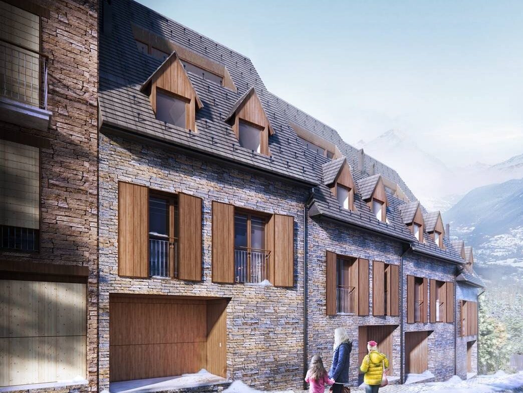 SEGUNDA FASE de la promoción de casas en el Cap dera Vila de Vielha, una zona privilegiada cerca del casco antiguo que conserva el carácter especial, tranquilidad y construcciones tradicionales del Valle de Arán con piedra y madera. Estas casas combinan la esencia rústica del Valle con la modernidad de las nuevas promociones. Disponen de 3 dormitorios + una suite en el ático con baño y terraza, otro baño completo, salón comedor muy confortable con chimenea y cocina americana con isla, aseo de cortesía y garaje amplío y cerrado.~