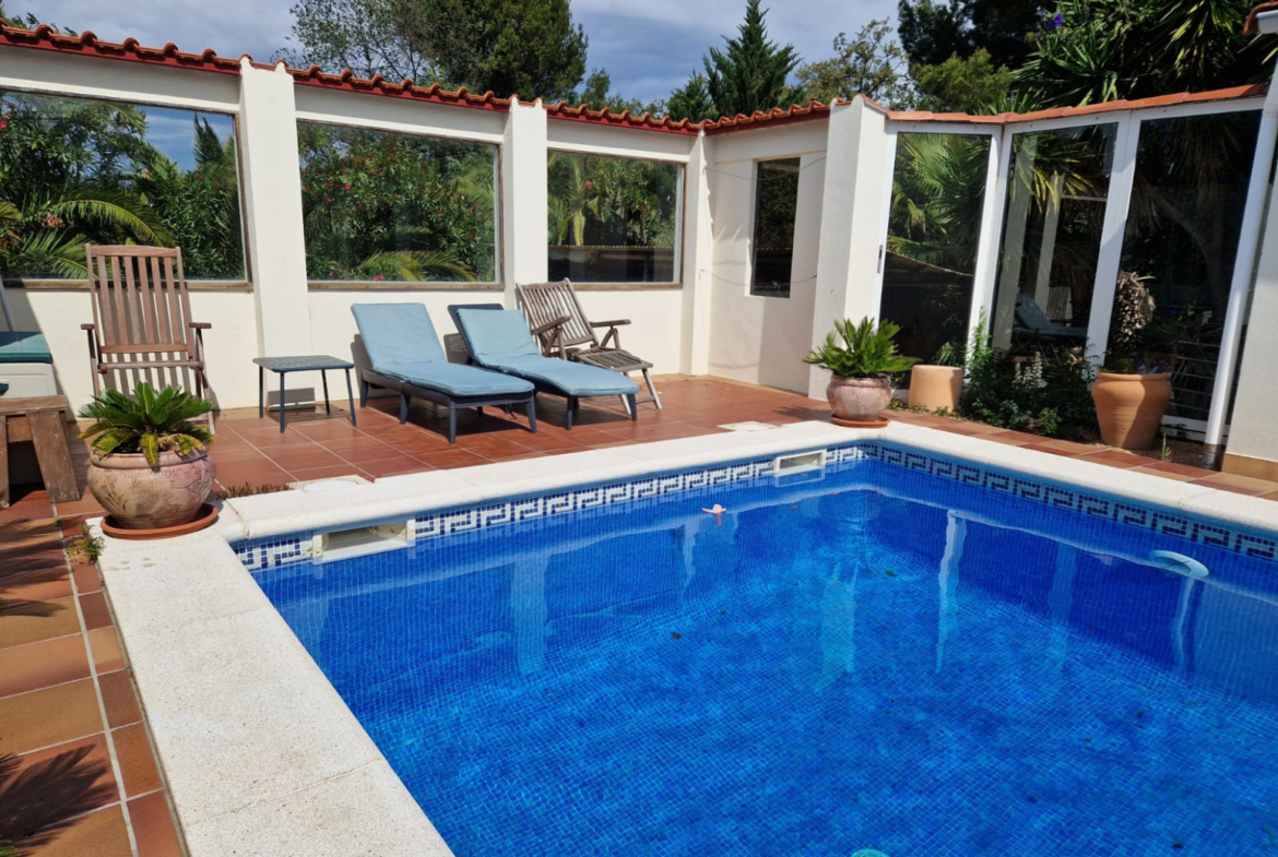 RV46 – Roses, Mas Fumats: Villa independiente de planta baja con piscina, licencia turística, a tan solo 3 km de las playasEn la tranquila y apreciada urbanización de Mas Fumats, en Roses, se encuentra esta villa independiente con piscina privada, ideal para quienes buscan disfrutar del clima mediterráneo, la tranquilidad y la cercanía a las playas de la Costa Brava. La villa cuenta con licencia turística, lo que permite explotarla como alquiler vacacional y generar una renta adicional significativa.La propiedad dispone de 243 m² construidos sobre una parcela de 706 m², ofreciendo amplios espacios exteriores y gran potencial. La vivienda cuenta con 3 dormitorios, incluyendo una suite con baño privado con bañera y ducha, además de un segundo baño completo para los otros dormitorios.El salón-comedor es amplio y luminoso, con chimenea, y se conecta con una cocina totalmente equipada y semiabierta, que podría integrarse completamente para crear un espacio de vida aún más amplio y moderno.La casa está equipada con calefacción de gas ciudad y ventanas de doble acristalamiento, lo que aporta mayor confort durante todo el año.Construida en 1979, la vivienda requiere algunas reformas de actualización para adaptarla a los estándares actuales, lo que representa una excelente oportunidad para personalizarla y crear una casa a su gusto en un entorno privilegiado.En el exterior encontramos un agradable jardín con terraza y zona de barbacoa, perfecto para disfrutar del aire libre durante todo el año, así como una piscina privada de 8 x 4 metros. La vivienda también dispone de un solárium con bonitas vistas al mar.La finca está completamente cerrada, lo que garantiza privacidad y seguridad, y cuenta además con un garaje privado de 34 m².Ubicada a tan solo 3 km de las playas de Roses, con fácil acceso a supermercados, comercios, restaurantes y servicios, esta propiedad representa una excelente oportunidad como residencia habitual, segunda vivienda o inversión en la Costa Brava.Una villa con mucho potencial, en un entorno natural privilegiado, perfecta para transformarla en el hogar ideal.Contácte a Remax Brava para más información o para organizar una visita.~