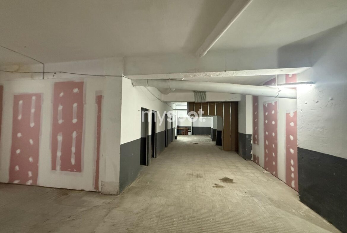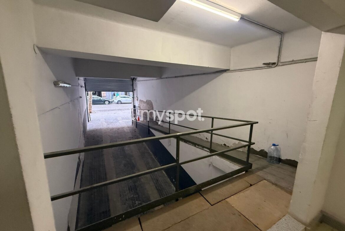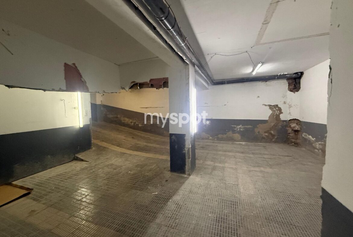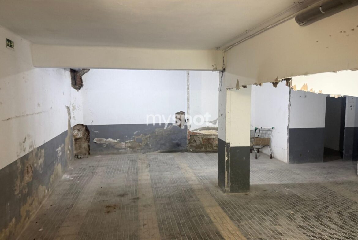 SE VENDE ALMACEN AMPLIO y LOCAL en pleno Eixample de 640 m2, de una planta sótano -1 con amplia rampa con acceso a la calle, puerta mecanizada, fácil visibilidad de entrada y salida del local, un despacho pequeño y aseo. Uso permitido: Almacen. Hay que tirar los paredes de los antiguos trasteros (presupuesto approx 6000€)~~Este local ha tenido la actividad de parking, con una capacidad de 14 plazas. Se dio de baja 2018, por lo cual es posible volver a activarla (previa revision tecnico por normativa actual). Actualmente es almacén.~~Buena ubicación y comunicación, en una zona comercial de alto flujo, en el barrio de moda Sant Antoni (Eixample) al lado de la Av. de Parallel, en medio de centros residenciales y áreas de actividad empresarial.~~Metros y autobuses cercanos.~