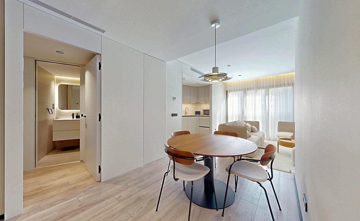 Presentamos esta vivienda de obra muy reciente, lista para entrar a vivir, con acabados de alta gama y situada en la prestigiosa Calle Balmes, en el distrito de Sant Gervasi, justo frente la Clínica del Pilar, en una de las zonas más demandadas de Barcelona. Con una superficie de 70 m² y construida en 2022, ha sido utilizada únicamente por su propietario, no ha estado alquilada y se encuentra en estado impecable.~Características principales:~Superficie construida: 70 m²~Distribución: 2 dormitorios y 2 baños completos (uno de ellos en suite)~Extras: Armarios empotrados, vivienda totalmente exterior, vistas despejadas~Servicios: Portería y opción de plaza de parking en la misma finca~Estado: Edificio de 2022, prácticamente nuevo y en excelente conservación~Ubicado en una tercera planta, el piso es completamente exterior y combina diseño contemporáneo con una distribución funcional. El salón-comedor, amplio y muy luminoso, disfruta de vistas abiertas y agradables. La cocina, totalmente equipada, se integra de forma cómoda y práctica en el espacio principal.~Las dos habitaciones cuentan con armarios empotrados, y el dormitorio principal dispone de baño en suite. La vivienda se completa con dos baños íntegros, ambos con acabados de gran calidad.~Destaca su excelente nivel de aislamiento térmico y acústico, con calificación energética “A”, carpintería exterior con doble acristalamiento y rotura de puente térmico, además de suelo de parquet natural.~DETALLE DE CALIDADES: ~CARPINTERÍA EXTERIOR~.- Carpintería de TECHNAL modelo SOLEAL con ventanas y balconera practicables en plantas tipo. Modelo LUMEAL en ático y sobreático correderas.~.- Ventanas inferiors con perfilería TECHNAL practicables de una o dos hojas oscilo-batientes modelo SOLEAL con micro-ventilación. Todo ello color RAL 7006.~~CARPINTERÍA INTERIOR~.- Puertas acceso a viviendas. Puerta blindada de 45mm de grosor con cerradura de seguridad y escudo antipalanca, con 3 puntos de anclaje y herrajes color negro por el lado interior.~.- En armarios empotrados de puertas practicables fabricados en DM lacado.~~COCINA~.- Mobiliario de cocina completo marca NOLTE Küchen modelo SOFTLACK (laca matel). Iluminación integrada con tira LED en muebles altos.~.- Tirador gola color negro integrado en los muebles bajos.~.- Zócalos de 50 mm de aluminio color negro.~.- Encimeras y pared encimera tipo SILESTONE WHITESTORM.~.- Grifería modelo Linux (marca BLANCO).~.- Fregadero de un seno de acero inoxidable.~.- En cocinas cerradas, pavimento cerámico según memoria.~~ELECTRODOMÉSTICOS~.- Placa de inducción NEFF.~.- Campana extractora NEFF.~.- Horno multifunción NEFF.~.- Lavavajillas NEFF.~.- Frigorífico NEFF~ACS / CLIMA~.- Instalación de aire acondicionado distribuido por conductos.~.- Sistema de Aerotermia PANASONIC ELECTRIC con unidad exterior e interior para la producción de calor y frío con fancoils.~~La finca dispone de servicio de portería, aportando un plus de seguridad y confort, así como la posibilidad de adquirir una plaza de aparcamiento en el mismo edificio, un valor añadido en una ubicación tan céntrica.~~ ~Servicios cercanos:~Supermercados, colegios, centros médicos, parques y zonas de ocio a pocos minutos.~Zona de alta demanda:~Calle Balmes es sinónimo de prestigio y consolidación residencial.~Si busca una vivienda lista para entrar a vivir, en una ubicación estratégica y consolidada, que además represente una inversión sólida y de valor patrimonial, esta propiedad es una oportunidad excepcional.~El precio no incluye el mobiliario, salvo acuerdo específico.~El precio no incluye impuesto de Transmisión Patrimonial, Gastos de Notaría, y Registro de la Propiedad, así como eventuales gastos de financiación.~~~