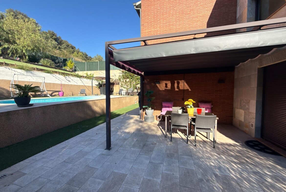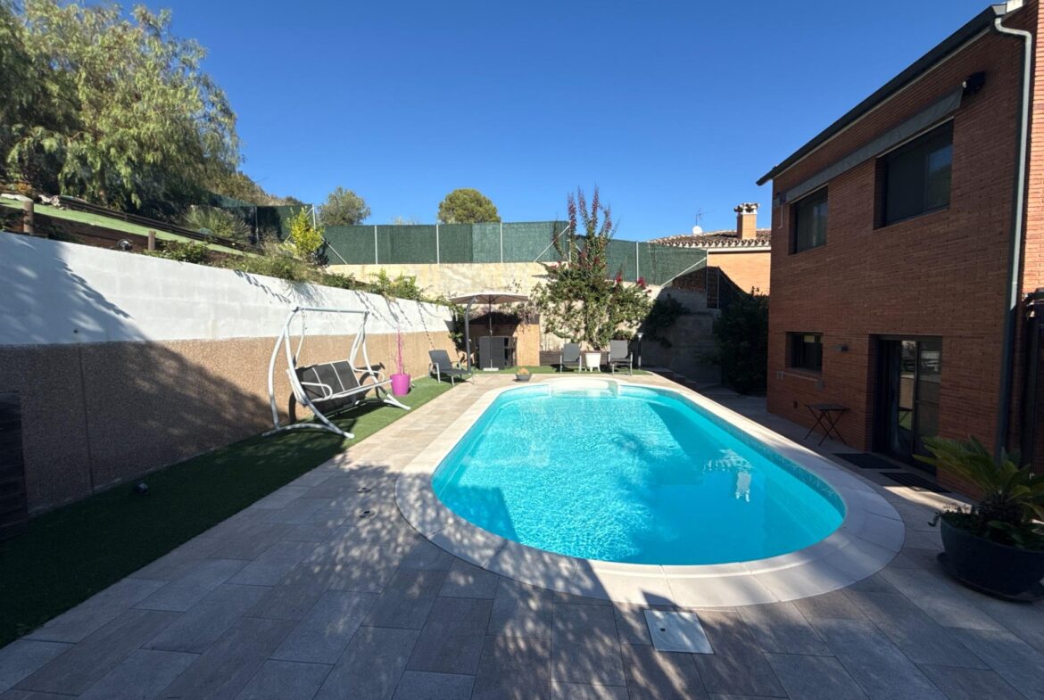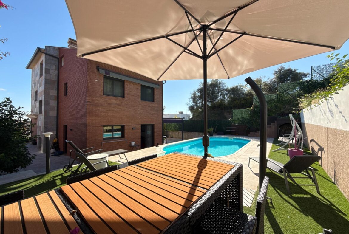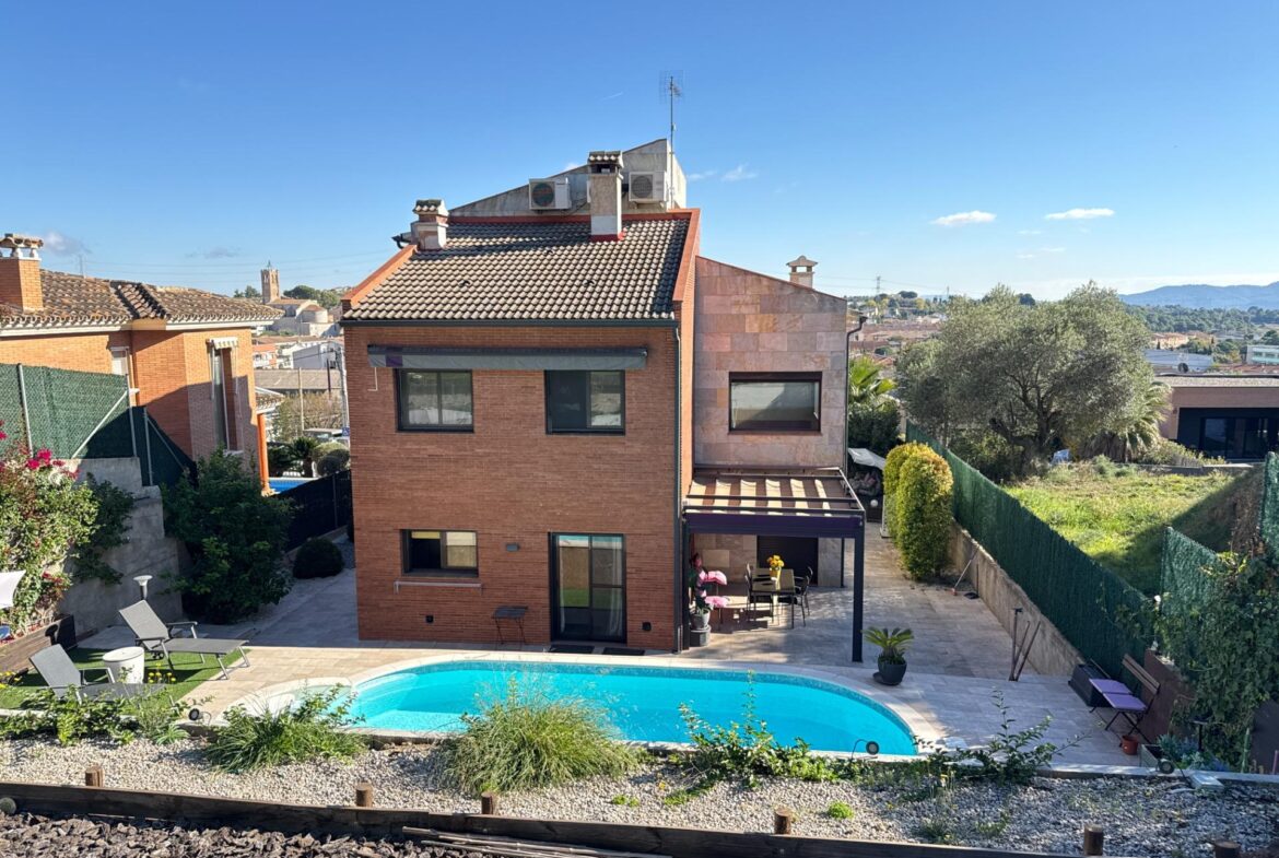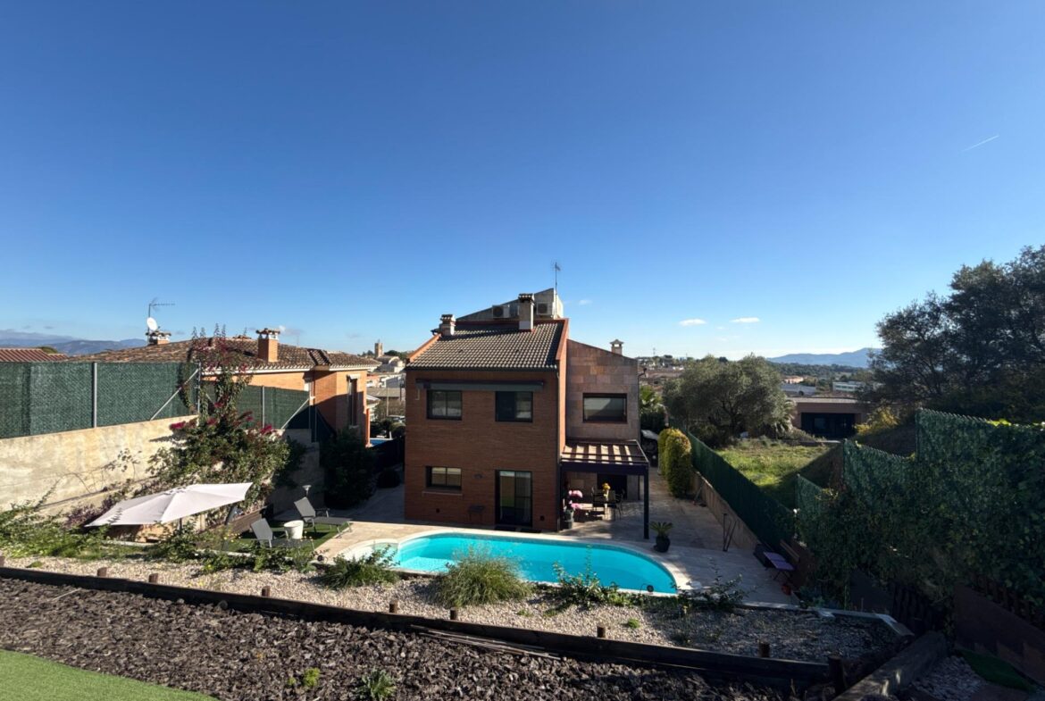 En un entorno residencial tranquilo y bien conectado, a solo 6 minutos del Campo de Golf Masia Bach, a 35’ de Sitges, 35–40’ de la Av. Diagonal de Barcelona y 30–35’ del Aeropuerto de El Prat, se alza esta vivienda a cuatro vientos, diseñada para disfrutarla en familia y con todas las comodidades a mano. ~~Además, su proximidad a Martorell (14’) y SEAT (14’) la convierte en una opción ideal para quienes buscan equilibrio entre privacidad y accesibilidad, y que, además, no solo destaca por su arquitectura y comodidades; también por lo que transmite: es esa sensación difícil de explicar, pero fácil de sentir cuando un lugar está pensado para vivirlo de verdad.~~Construida sobre una parcela de 700 m², esta propiedad de 4 plantas con ascensor destaca por su impecable estado y por ofrecer un estándar de calidad poco habitual en la zona. Todo está preparado para entrar a vivir, con detalles pensados para aportar bienestar, eficiencia y una experiencia residencial de auténtico “living luxury”.~~En la planta principal, de 83 m² útiles, nos recibe un salón de 30 m² con chimenea, cálido y luminoso, conectado con una cocina de 15 m² que da acceso directo a un porche de 20 m², perfecto para comidas al aire libre y momentos de tranquilidad con vistas al jardín. La zona exterior se completa con una elegante piscina, verdadera protagonista en los meses de verano.~~La vivienda dispone de 4 habitaciones (3 dobles y 1 individual), 3 baños completos y 1 aseo, distribuidos de forma cómoda y funcional. En la primera planta, de 77 m² útiles, se sitúa una espectacular suite de 44 m², que incluye vestidor, chimenea, baño con bañera de hidromasaje y salida a una terraza privada. Un espacio que, más que un dormitorio, es como un refugio.~~La buhardilla, de 33 m², actualmente configurada como biblioteca o despacho, añade una dimensión acogedora y versátil, e incorpora una terraza de 8 m² que aporta luz y calma a este nivel superior.~~El garaje, con 127 m² útiles, ofrece capacidad sobrada para varios vehículos, zona de almacenaje, gimnasio, o incluso un espacio de trabajo complementario.~~En cuanto al equipamiento, la casa está preparada para un confort total: instalación para aire acondicionado en toda la vivienda, persianas eléctricas en la planta cero y casi todas en la planta uno, toma de TV y teléfono en todas las estancias, calefacción de gas natural, placas solares para el agua caliente, y un ascensor que conecta el garaje con la planta 1ª de las habitaciones, aportando accesibilidad y comodidad absolutas.~~Un hogar diferente, acogedor y con ese “algo” especial que no se explica: se siente. Perfecta para quienes valoran espacio, luz, privacidad, y una calidad de vida superior, sin renunciar a estar cerca de todo.~~