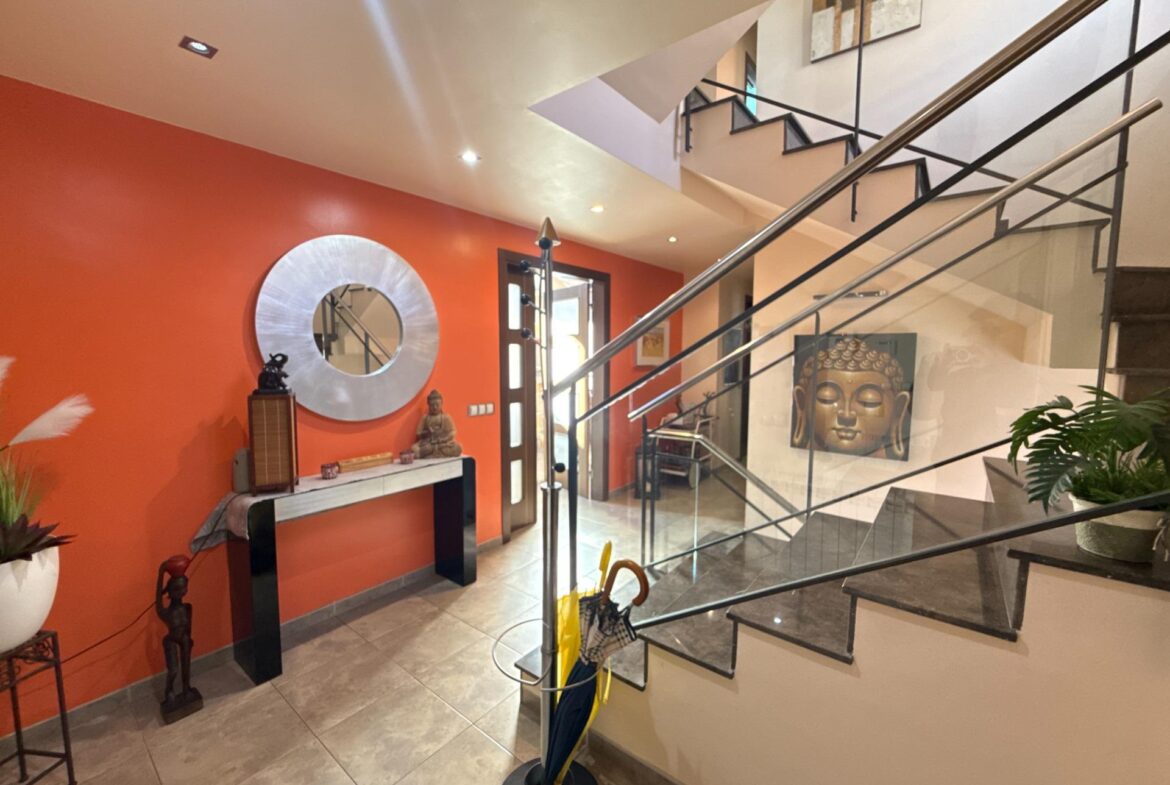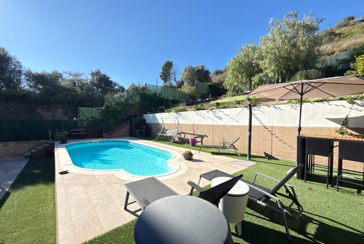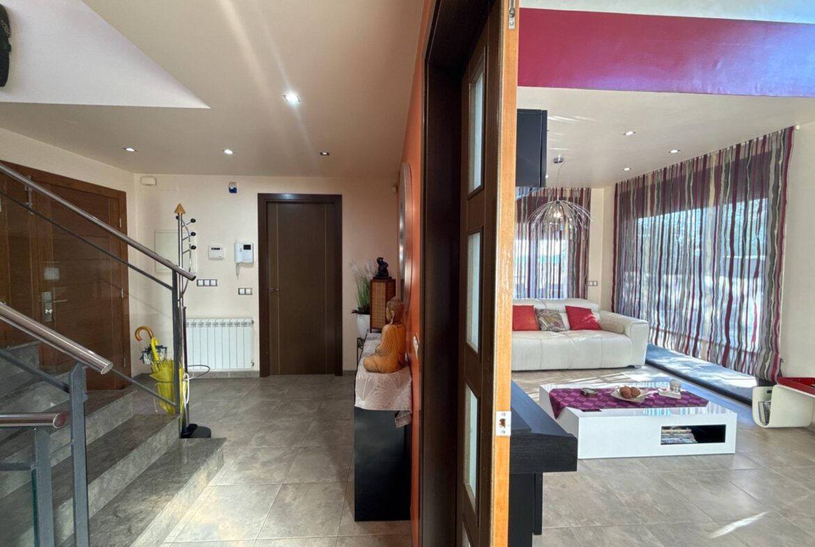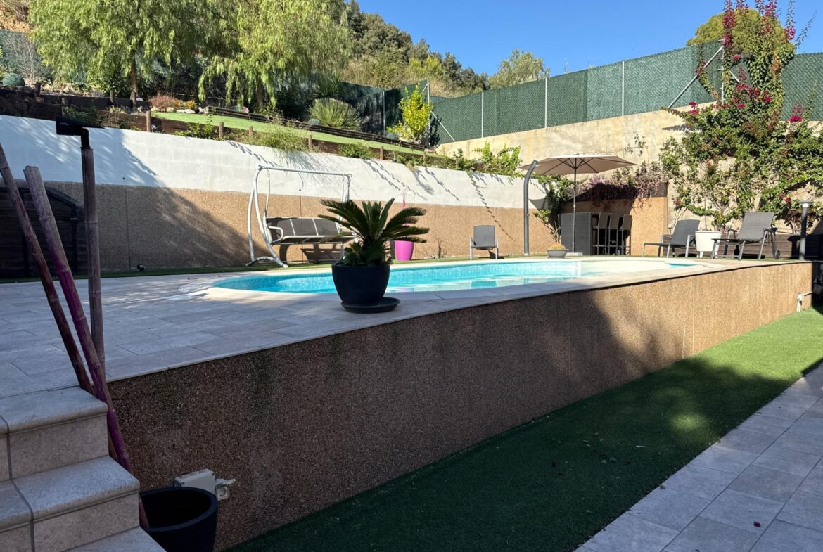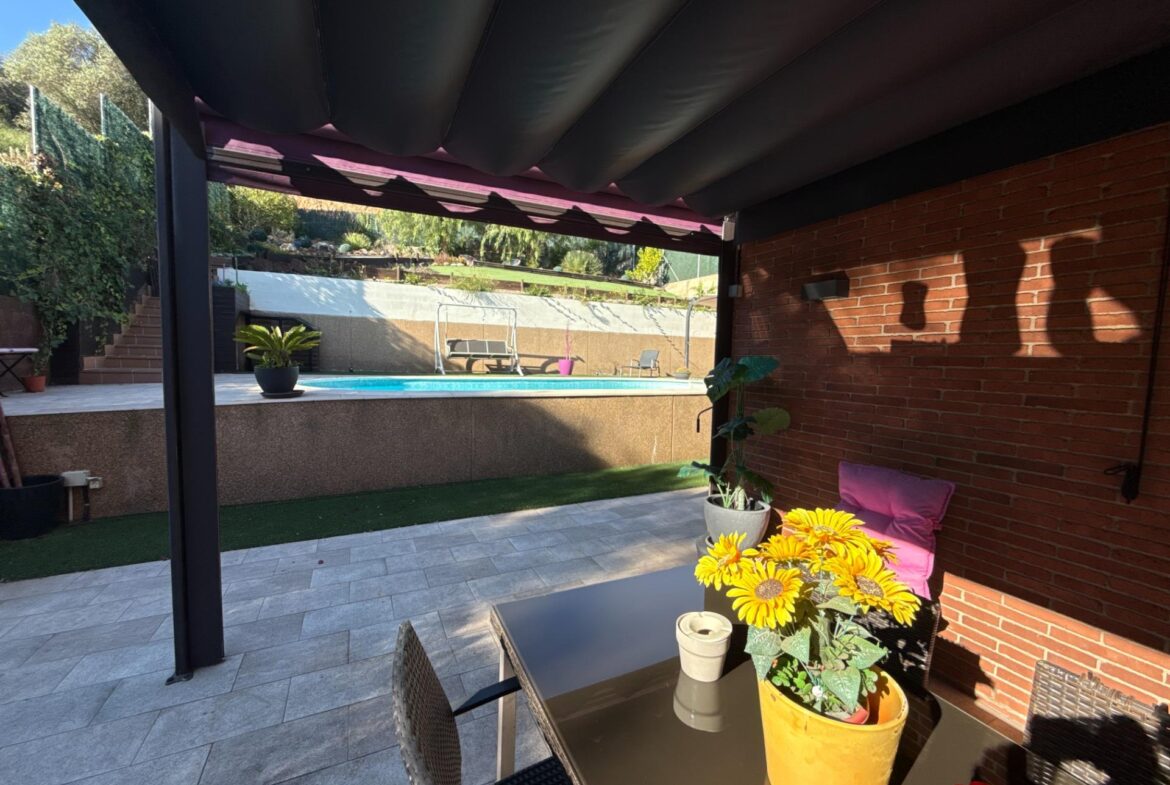 En un entorno residencial tranquilo y bien conectado, a solo 6 minutos del Campo de Golf Masia Bach, a 35’ de Sitges, 35–40’ de la Av. Diagonal de Barcelona y 30–35’ del Aeropuerto de El Prat, se alza esta vivienda a cuatro vientos, diseñada para disfrutarla en familia y con todas las comodidades a mano. ~~Además, su proximidad a Martorell (14’) y SEAT (14’) la convierte en una opción ideal para quienes buscan equilibrio entre privacidad y accesibilidad, y que, además, no solo destaca por su arquitectura y comodidades; también por lo que transmite: es esa sensación difícil de explicar, pero fácil de sentir cuando un lugar está pensado para vivirlo de verdad.~~Construida sobre una parcela de 700 m², esta propiedad de 4 plantas con ascensor destaca por su impecable estado y por ofrecer un estándar de calidad poco habitual en la zona. Todo está preparado para entrar a vivir, con detalles pensados para aportar bienestar, eficiencia y una experiencia residencial de auténtico “living luxury”.~~En la planta principal, de 83 m² útiles, nos recibe un salón de 30 m² con chimenea, cálido y luminoso, conectado con una cocina de 15 m² que da acceso directo a un porche de 20 m², perfecto para comidas al aire libre y momentos de tranquilidad con vistas al jardín. La zona exterior se completa con una elegante piscina, verdadera protagonista en los meses de verano.~~La vivienda dispone de 4 habitaciones (3 dobles y 1 individual), 3 baños completos y 1 aseo, distribuidos de forma cómoda y funcional. En la primera planta, de 77 m² útiles, se sitúa una espectacular suite de 44 m², que incluye vestidor, chimenea, baño con bañera de hidromasaje y salida a una terraza privada. Un espacio que, más que un dormitorio, es como un refugio.~~La buhardilla, de 33 m², actualmente configurada como biblioteca o despacho, añade una dimensión acogedora y versátil, e incorpora una terraza de 8 m² que aporta luz y calma a este nivel superior.~~El garaje, con 127 m² útiles, ofrece capacidad sobrada para varios vehículos, zona de almacenaje, gimnasio, o incluso un espacio de trabajo complementario.~~En cuanto al equipamiento, la casa está preparada para un confort total: instalación para aire acondicionado en toda la vivienda, persianas eléctricas en la planta cero y casi todas en la planta uno, toma de TV y teléfono en todas las estancias, calefacción de gas natural, placas solares para el agua caliente, y un ascensor que conecta el garaje con la planta 1ª de las habitaciones, aportando accesibilidad y comodidad absolutas.~~Un hogar diferente, acogedor y con ese “algo” especial que no se explica: se siente. Perfecta para quienes valoran espacio, luz, privacidad, y una calidad de vida superior, sin renunciar a estar cerca de todo.~~