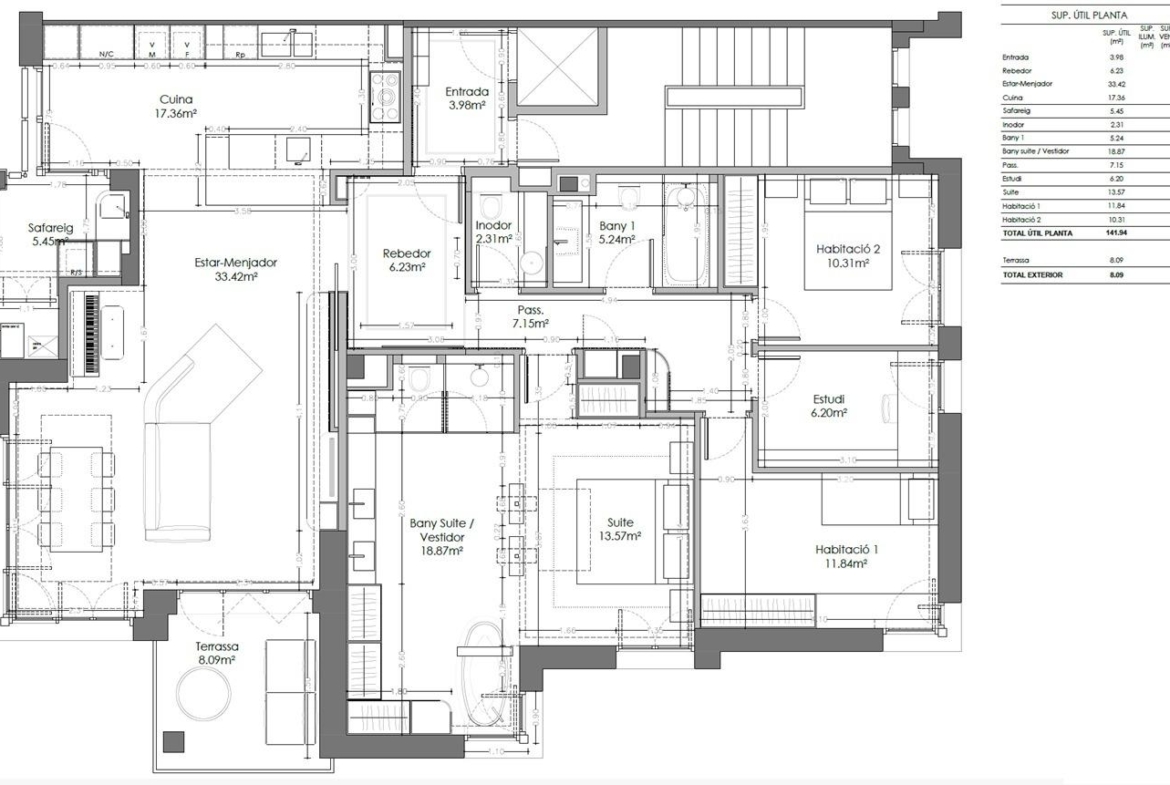 Abrir la puerta es entrar en una nueva manera de vivir.~Imagina el ritual del atardecer: la ciudad al fondo, Collserola tiñéndose de oro mientras brindas en la acogedora terraza. La iluminación perimetral del salón cambia el tono de la velada con un gesto —escena íntima para dos o noche de confidencias con amigos—. Aquí, cada visita es una experiencia y cada detalle, una conversación.~El salón, amplio y luminoso, con chimenea, cuenta con una puerta de vidrio que lo separa de la zona de noche e inunda de luz las zonas de paso. La cocina abierta, con barra, invita a cocinar mirando la vida: placa de inducción de 8 fuegos, placa teppanyaki, superficies de Neolith, revestimientos de baños Porcelanosa y madera noble y electrodomésticos de alta gama de la marca Küppersbusch que hacen fácil lo que debe lucir; la galería completa el espacio con lavadora y secadora, orden sin renunciar a la estética. Música ambiente con sistema Sonos, temperatura de luz a tu gusto (Downlight regulable) y la ciudad como decorado.~Cuando llega el descanso, la suite principal es un hotel en casa: baño integrado con ducha y bañera de hidromasaje para elegir ritmo o pausa. Las otras tres habitaciones (dos dobles y una individual) se adaptan a todo: elegante despacho, dormitorio infantil o espacio para recibir a la familia el fin de semana. Dos baños diseñados para el día a día exigente: uno en el pasillo, funcional e impecable; el otro, privado en la suite, para momentos de bienestar sin mirar el reloj. Todos equipados con sanitarios Villeroy & Boch y grifería Hansgrohe.~Aquí la vida cotidiana también tiene categoría: solo un vecino por planta, acceso exclusivo con ascensor directo a la vivienda, portería y finca con zona ajardinada para desconectar entre reuniones. Entrar y sentir que todo está pensado: reforma reciente de alta gama, materiales nobles (parquet de madera natural y mármol italiano), acabados precisos, iluminación perimetral con selección de color, puerta blindada de alta seguridad, sistema de climatización con Airzone y radiadores de diseño Runtal.~La ubicación es tu aliada: pleno centro de Sabadell, junto a colegios, hospitales, supermercados, ocio, gimnasios, restaurantes, Ayuntamiento, servicios públicos, tren y acceso rápido a la Gran Vía. Vivir el centro sin renunciar al espacio (194 m²) ni a la discreción.~¿Y cuando llegan los amigos? La terraza se convierte en tu mejor escenario: largas sobremesas, risas que se alargan y esa vista abierta que invita al silencio cuando hace falta. El salón acompaña: amplitud para exponer arte, barra para servir cócteles, luces que transforman el ambiente y una cocina preparada para que todo salga perfecto.~Un piso para vivirlo y enseñarlo. Para parejas que quieren empezar en alto, para quien busca la exclusividad de Barcelona sin el ruido de Barcelona, para familias que desean un espacio generoso donde hacer grande cada encuentro. Carrer Indústria, Sabadell: tu punto de encuentro entre prestigio, comodidad y estilo propio.~Preparado para entrar. Preparado para impresionar. ¿Quieres que te contemos más o prefieres venir a vivirlo? No lo dudes y ven a comprobarlo. Gestionamos hasta el 100% de la hipoteca (según perfil).~Precio de venta pis: 790.000 €./Plaza de aparcamiento opcional por 20.000€ extra. /Superficie útil: 141,94 m² (existe discrepancia con CH) + terraza (8,09m²). Las superficies indicadas son orientativas y no tienen carácter contractual/Impuestos no incluidos. Se aplicará ITP (10%) en caso de vivienda usada o IVA (10%) + AJD si se trata de obra nueva./Honorarios de intermediación a cargo del vendedor, calculados sobre el precio de venta./Gastos notariales y registrales no incluidos./El mobiliario, decoración y enseres no están incluidos en el precio.~~Nº AICAT: 7.917~Nº API: 3.507~NºCédula de habitabilidad: CHB04091320001~Ref.CEE: ZTZNX6H43~~