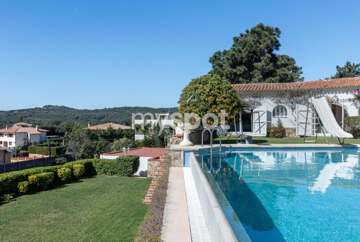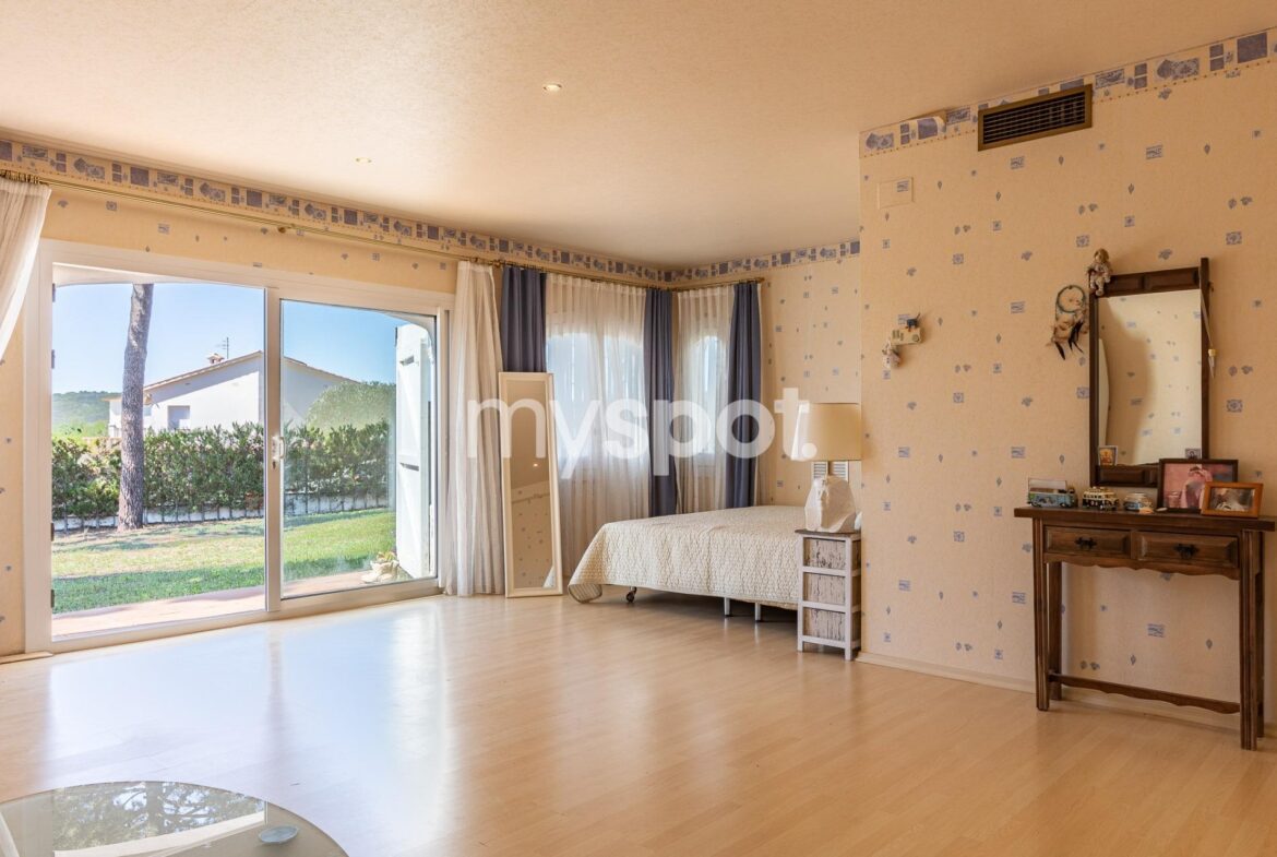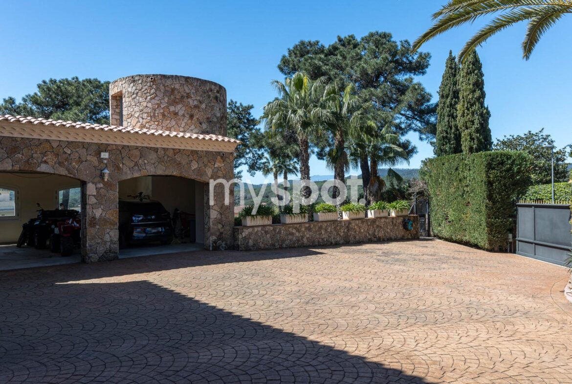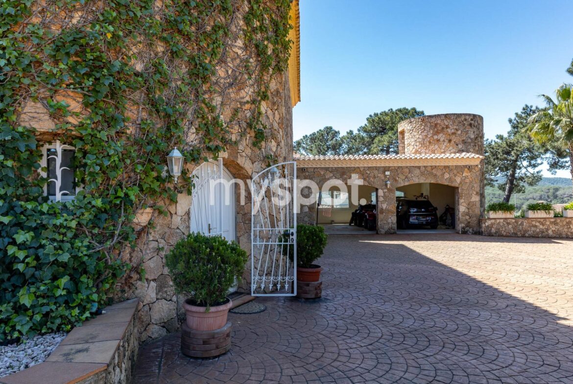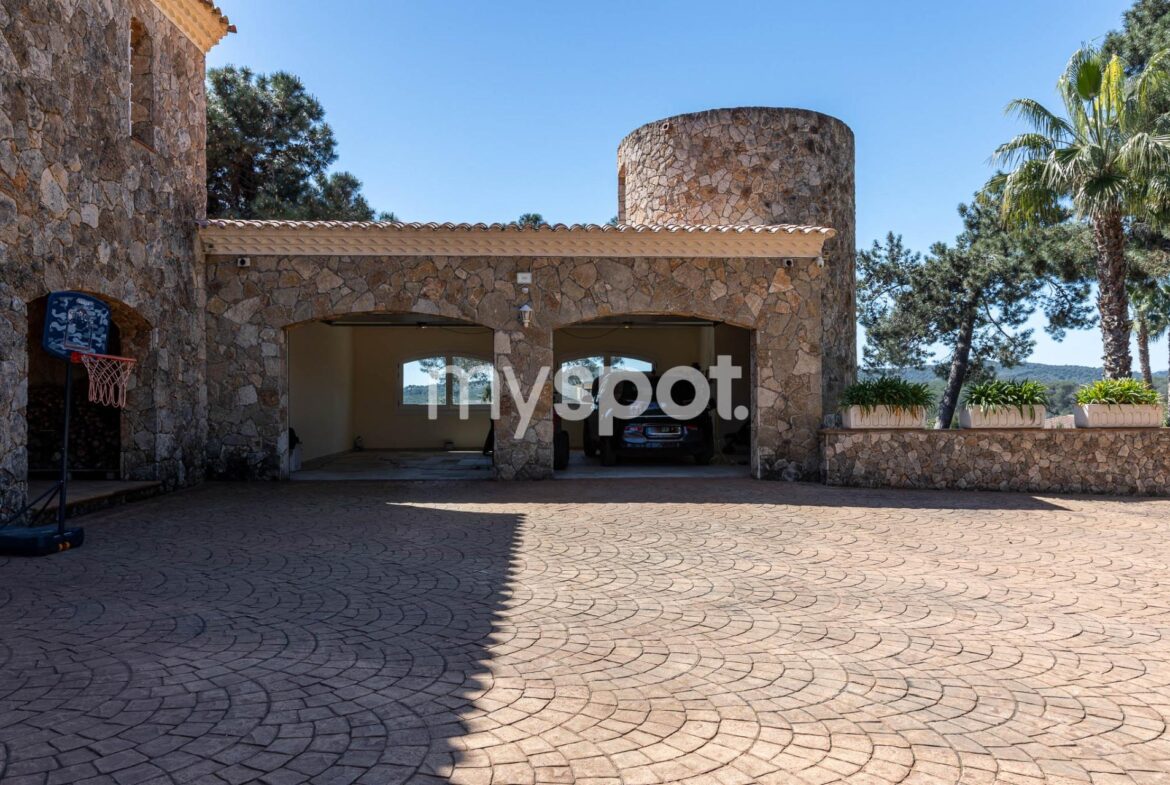 Espectacular villa con 7 dormitorios y 9 baños, situada en la codiciada urbanización Condado del Jaruco, en las colinas de Lloret de Mar. Esta propiedad única ofrece 4.119 m² de parcela orientada al sur y 644 m² superficie vivienda rodeado de varios terrazas y jardines con mucha privacidad, vistas despejadas y un sinfín de comodidades para una vida de alto confort. La pista de tenis es terreno edificable de 900 m² para construir una casa unifamiliar de hasta 540 m².~~~Características adicionales: pista de tenis, garajes para 4-5 coches grandes, varias terrazas soleadas, zona de barbacoa, jardín cuidado con riego automático, suelo de granito, mármol y alfombras, aire acondicionado, calefacción de gas~~Parte del estate es un un apartamento con entrada independiente de 70 m² con baño, cocina, salón y dormitorio doble – ideal para invitados o personal de servicio.~~Características destacadas~ Urbanización privada, cuidada y con vigilancia~ 7 dormitorios amplios, 7 baños y 3 aseos.~ 2 piscinas (interior profunda y exterior con jacuzzi)~ Gimnasio, sala de cine, sala de juegos~ 2 saunas (finlandesa y turca)~ Apartamento independiente de 70 m²~ Parcela de 4.119 m² con jardín y sistema de riego automático~ Terreno adicional edificable de 900 m² (actual pista de tenis)~ Garaje cerrado para 4-5 coches grandes y motos~ Aire acondicionado, calefacción de gas, alarma~~Condado del Jaruco es una prestigiosa urbanización ubicada en una zona elevada y tranquila de Lloret de Mar, rodeada de naturaleza, con vistas panorámicas al mar y a los bosques mediterráneos. Es conocida por su entorno cuidado, privacidad, seguridad y fácil acceso a todos los servicios de la ciudad y a las playas de la Costa Brava, a tan solo 5 minutos en coche.~~La urbanización destaca por sus amplias parcelas, casas de alto standing, jardines bien mantenidos y ambiente residencial muy tranquilo. Es ideal para quienes buscan vivir todo el año en un entorno exclusivo o como segunda residencia de alto nivel.~~Además, está perfectamente conectada:~• A solo 1,4 km de la playa~• A 3 min de supermercados, restaurantes y zonas deportivas~• A 65 km de Barcelona (menos de 1 hora en coche)~• Cerca de campos de golf, hípicas y parques acuáticos~~Perfecta para familias, amantes de la naturaleza y quienes buscan comodidad, privacidad y calidad de vida en un entorno mediterráneo.~