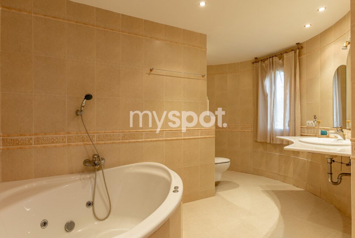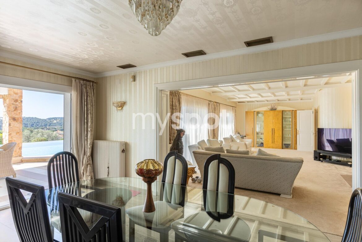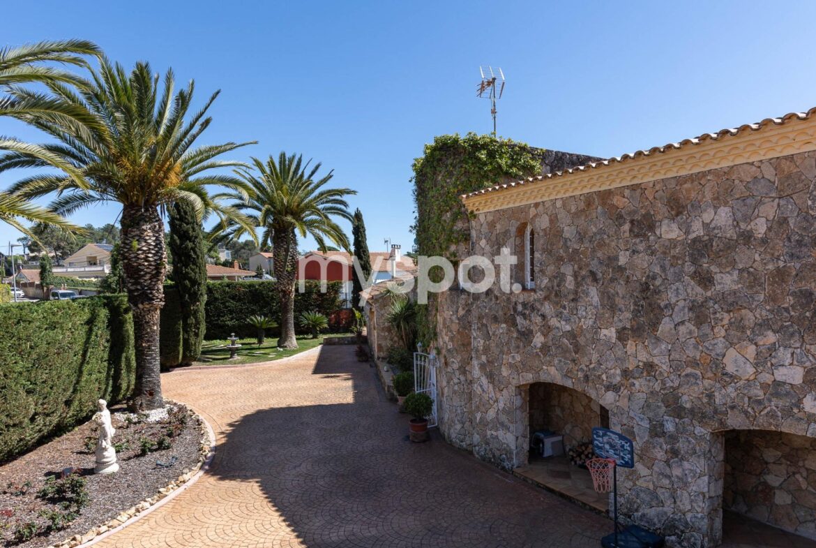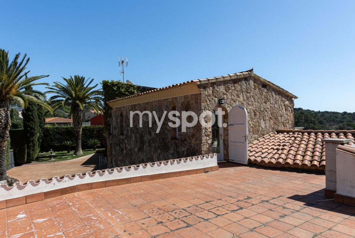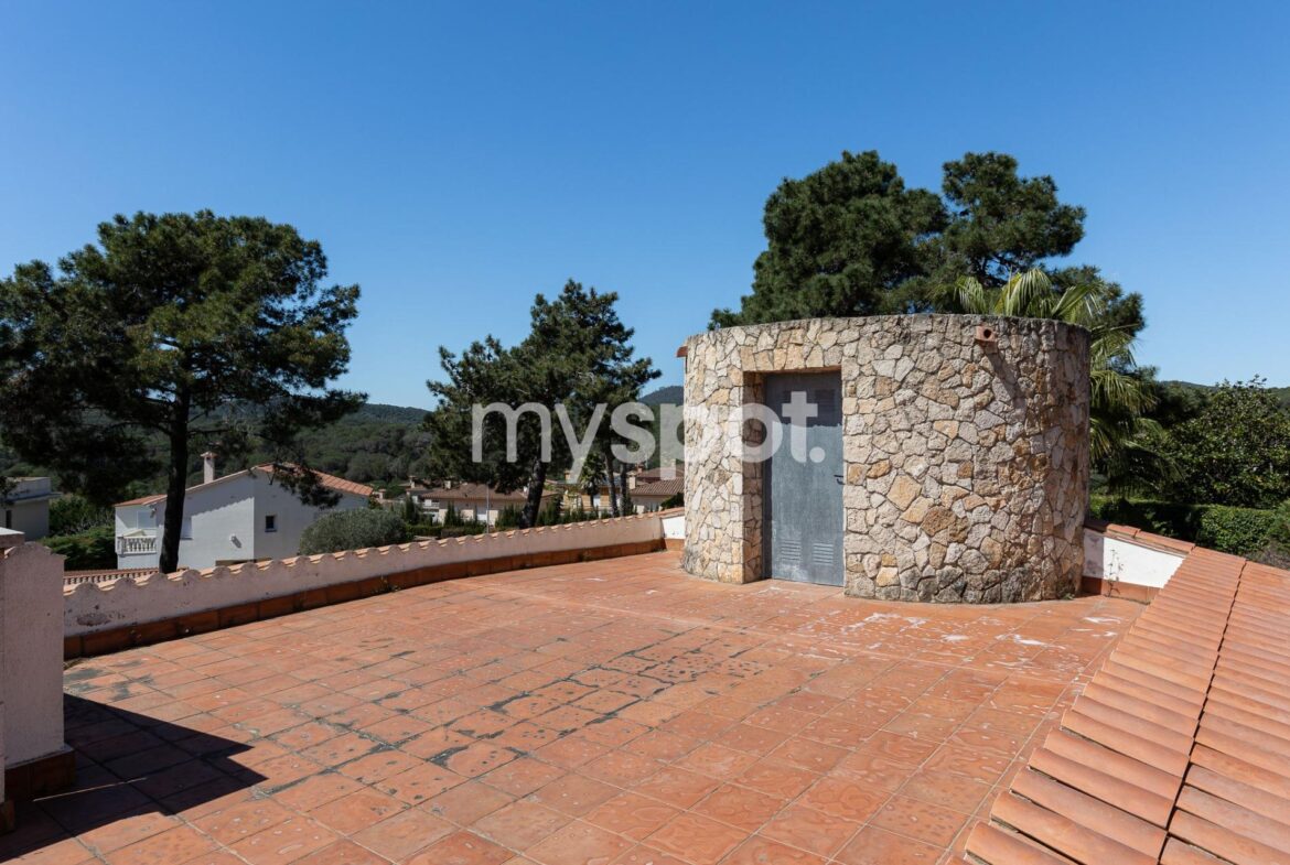 Espectacular villa con 7 dormitorios y 9 baños, situada en la codiciada urbanización Condado del Jaruco, en las colinas de Lloret de Mar. Esta propiedad única ofrece 4.119 m² de parcela orientada al sur y 644 m² superficie vivienda rodeado de varios terrazas y jardines con mucha privacidad, vistas despejadas y un sinfín de comodidades para una vida de alto confort. La pista de tenis es terreno edificable de 900 m² para construir una casa unifamiliar de hasta 540 m².~~~Características adicionales: pista de tenis, garajes para 4-5 coches grandes, varias terrazas soleadas, zona de barbacoa, jardín cuidado con riego automático, suelo de granito, mármol y alfombras, aire acondicionado, calefacción de gas~~Parte del estate es un un apartamento con entrada independiente de 70 m² con baño, cocina, salón y dormitorio doble – ideal para invitados o personal de servicio.~~Características destacadas~ Urbanización privada, cuidada y con vigilancia~ 7 dormitorios amplios, 7 baños y 3 aseos.~ 2 piscinas (interior profunda y exterior con jacuzzi)~ Gimnasio, sala de cine, sala de juegos~ 2 saunas (finlandesa y turca)~ Apartamento independiente de 70 m²~ Parcela de 4.119 m² con jardín y sistema de riego automático~ Terreno adicional edificable de 900 m² (actual pista de tenis)~ Garaje cerrado para 4-5 coches grandes y motos~ Aire acondicionado, calefacción de gas, alarma~~Condado del Jaruco es una prestigiosa urbanización ubicada en una zona elevada y tranquila de Lloret de Mar, rodeada de naturaleza, con vistas panorámicas al mar y a los bosques mediterráneos. Es conocida por su entorno cuidado, privacidad, seguridad y fácil acceso a todos los servicios de la ciudad y a las playas de la Costa Brava, a tan solo 5 minutos en coche.~~La urbanización destaca por sus amplias parcelas, casas de alto standing, jardines bien mantenidos y ambiente residencial muy tranquilo. Es ideal para quienes buscan vivir todo el año en un entorno exclusivo o como segunda residencia de alto nivel.~~Además, está perfectamente conectada:~• A solo 1,4 km de la playa~• A 3 min de supermercados, restaurantes y zonas deportivas~• A 65 km de Barcelona (menos de 1 hora en coche)~• Cerca de campos de golf, hípicas y parques acuáticos~~Perfecta para familias, amantes de la naturaleza y quienes buscan comodidad, privacidad y calidad de vida en un entorno mediterráneo.~