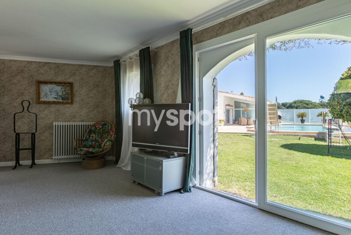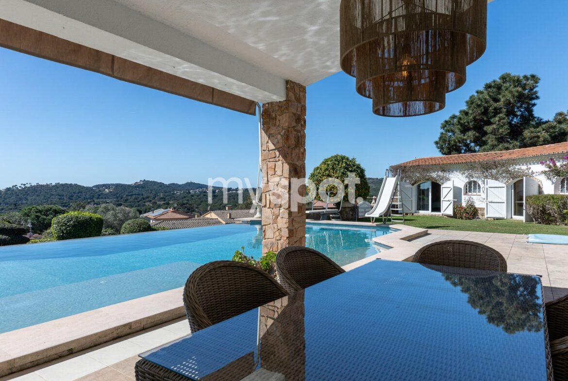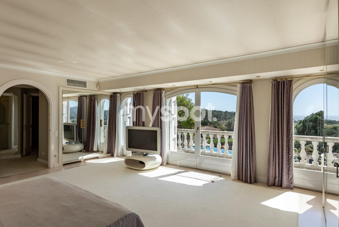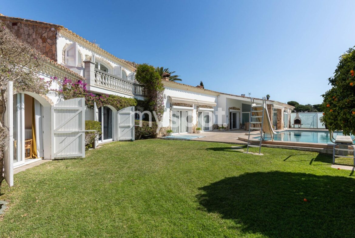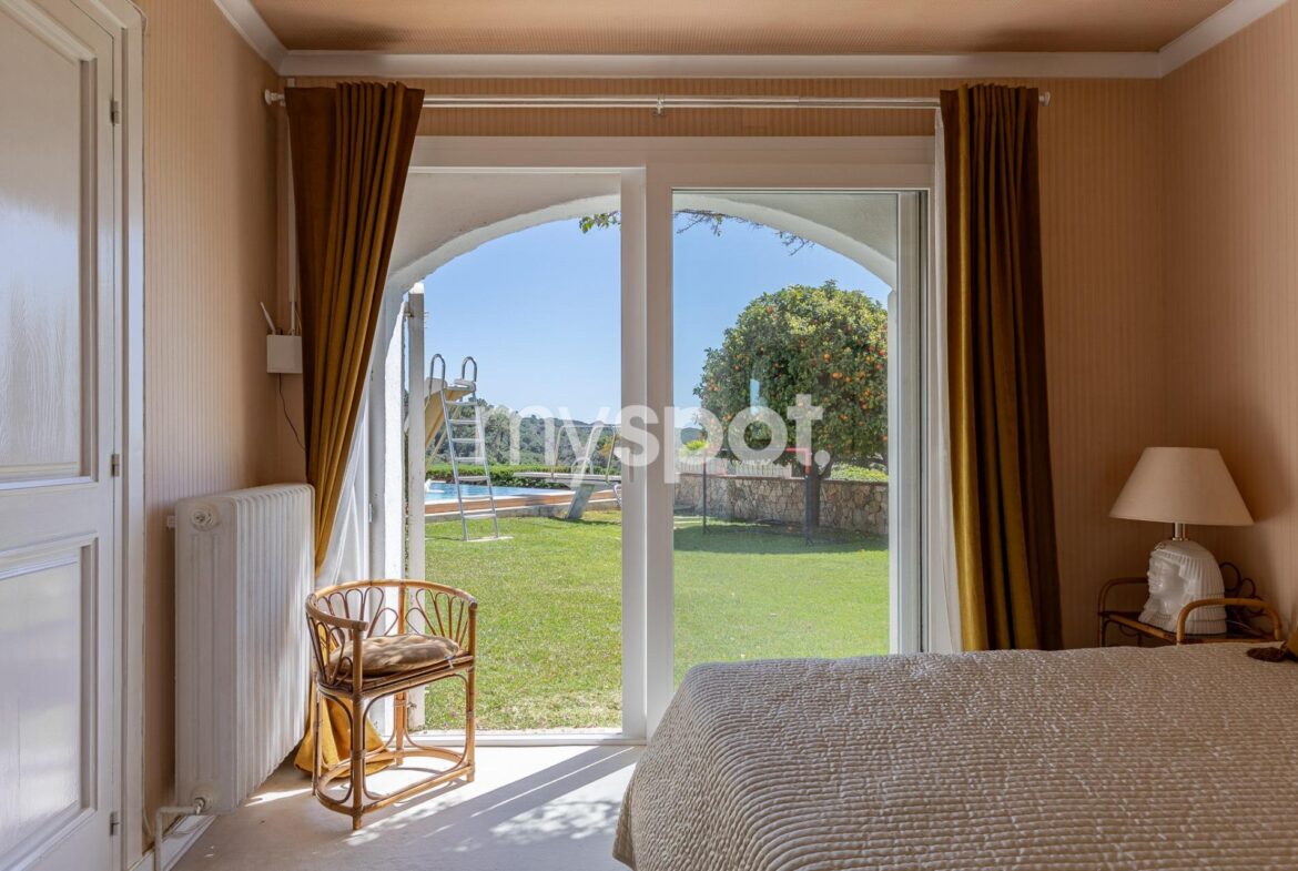 Espectacular villa con 7 dormitorios y 9 baños, situada en la codiciada urbanización Condado del Jaruco, en las colinas de Lloret de Mar. Esta propiedad única ofrece 4.119 m² de parcela orientada al sur y 644 m² superficie vivienda rodeado de varios terrazas y jardines con mucha privacidad, vistas despejadas y un sinfín de comodidades para una vida de alto confort. La pista de tenis es terreno edificable de 900 m² para construir una casa unifamiliar de hasta 540 m².~~~Características adicionales: pista de tenis, garajes para 4-5 coches grandes, varias terrazas soleadas, zona de barbacoa, jardín cuidado con riego automático, suelo de granito, mármol y alfombras, aire acondicionado, calefacción de gas~~Parte del estate es un un apartamento con entrada independiente de 70 m² con baño, cocina, salón y dormitorio doble – ideal para invitados o personal de servicio.~~Características destacadas~ Urbanización privada, cuidada y con vigilancia~ 7 dormitorios amplios, 7 baños y 3 aseos.~ 2 piscinas (interior profunda y exterior con jacuzzi)~ Gimnasio, sala de cine, sala de juegos~ 2 saunas (finlandesa y turca)~ Apartamento independiente de 70 m²~ Parcela de 4.119 m² con jardín y sistema de riego automático~ Terreno adicional edificable de 900 m² (actual pista de tenis)~ Garaje cerrado para 4-5 coches grandes y motos~ Aire acondicionado, calefacción de gas, alarma~~Condado del Jaruco es una prestigiosa urbanización ubicada en una zona elevada y tranquila de Lloret de Mar, rodeada de naturaleza, con vistas panorámicas al mar y a los bosques mediterráneos. Es conocida por su entorno cuidado, privacidad, seguridad y fácil acceso a todos los servicios de la ciudad y a las playas de la Costa Brava, a tan solo 5 minutos en coche.~~La urbanización destaca por sus amplias parcelas, casas de alto standing, jardines bien mantenidos y ambiente residencial muy tranquilo. Es ideal para quienes buscan vivir todo el año en un entorno exclusivo o como segunda residencia de alto nivel.~~Además, está perfectamente conectada:~• A solo 1,4 km de la playa~• A 3 min de supermercados, restaurantes y zonas deportivas~• A 65 km de Barcelona (menos de 1 hora en coche)~• Cerca de campos de golf, hípicas y parques acuáticos~~Perfecta para familias, amantes de la naturaleza y quienes buscan comodidad, privacidad y calidad de vida en un entorno mediterráneo.~
