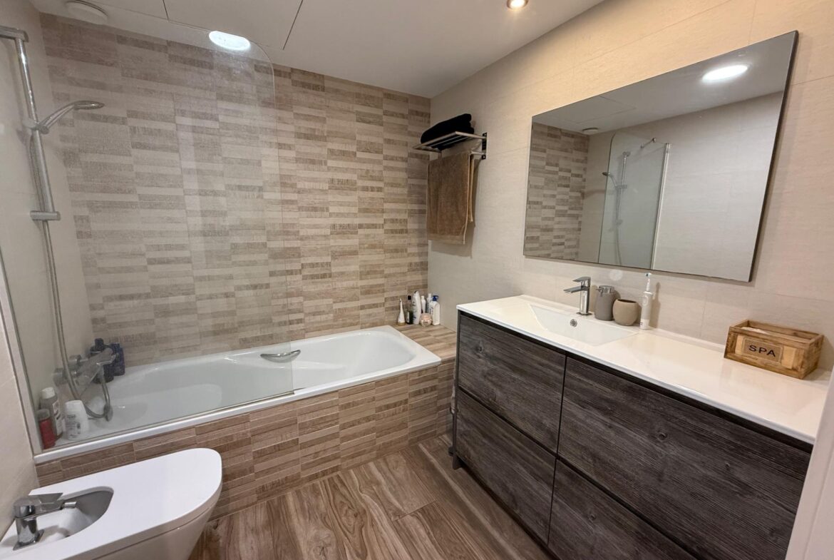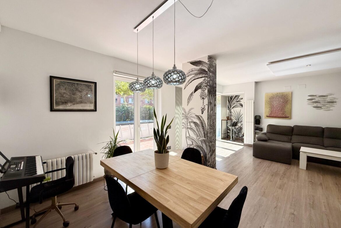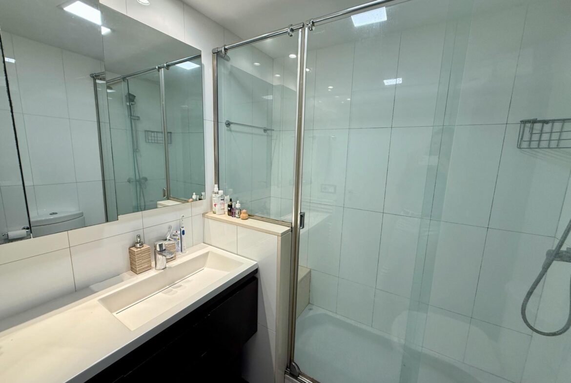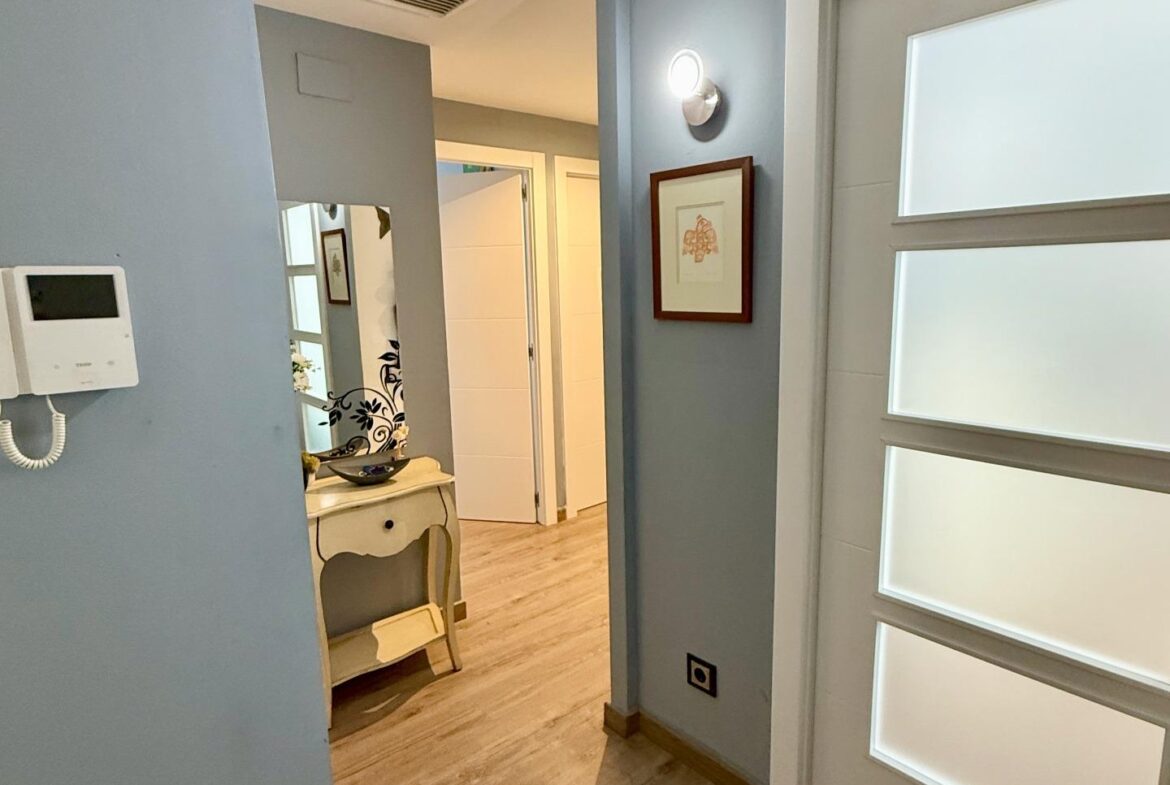 En una entreplanta elevada y luminosa, se encuentra esta atractiva vivienda que destaca por su fantástica terraza de 53 m², orientada hacia el tranquilo parque interior de la comunidad. Un espacio exterior soleado, silencioso y privado — ideal para familias, reuniones o simplemente para disfrutar del clima mediterráneo.~~La propiedad fue reformada íntegramente hace 6 años por una interiorista, combinando diseño contemporáneo con funcionalidad. Dispone de un amplio salón-comedor en concepto abierto, con zonas claramente diferenciadas y una atmósfera cálida y acogedora.~~Características principales:~•3 dormitorios exteriores con armarios empotrados~•2 baños completos~•Cocina totalmente equipada con barra de desayuno~•Aire acondicionado frío/calor~•Calefacción central por gas~•Carpintería exterior con doble acristalamiento y apertura oscilo-batiente~•Plaza de garaje opcional con Wallbox para coche eléctrico~•Finca con portería 24h y patio interior con zona de juegos infantil~~Ubicación:~~Situada en el corazón de la Vila Olímpica, esta vivienda ofrece una combinación ideal de tranquilidad, seguridad y cercanía al mar. A pocos minutos caminando de la playa y rodeada de servicios, colegios, zonas verdes y transporte público, es una opción perfecta para familias que buscan calidad de vida en una de las zonas más agradables de Barcelona.~~